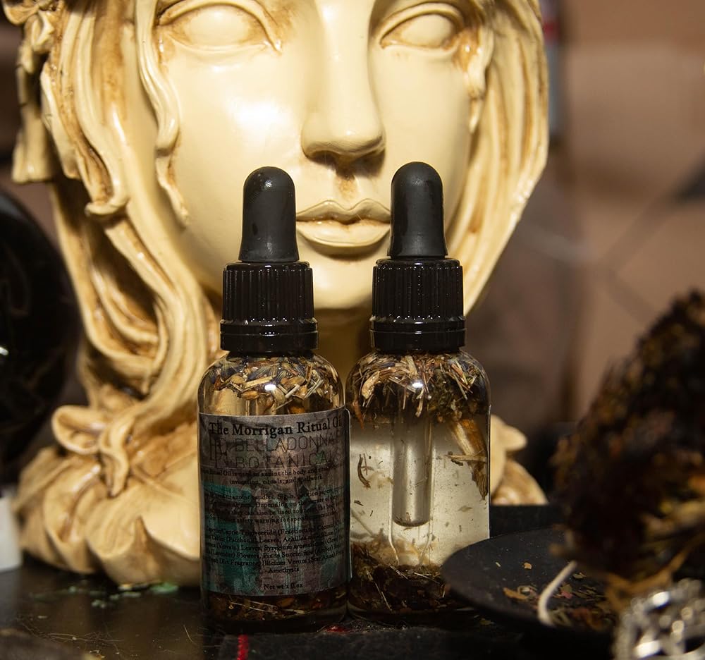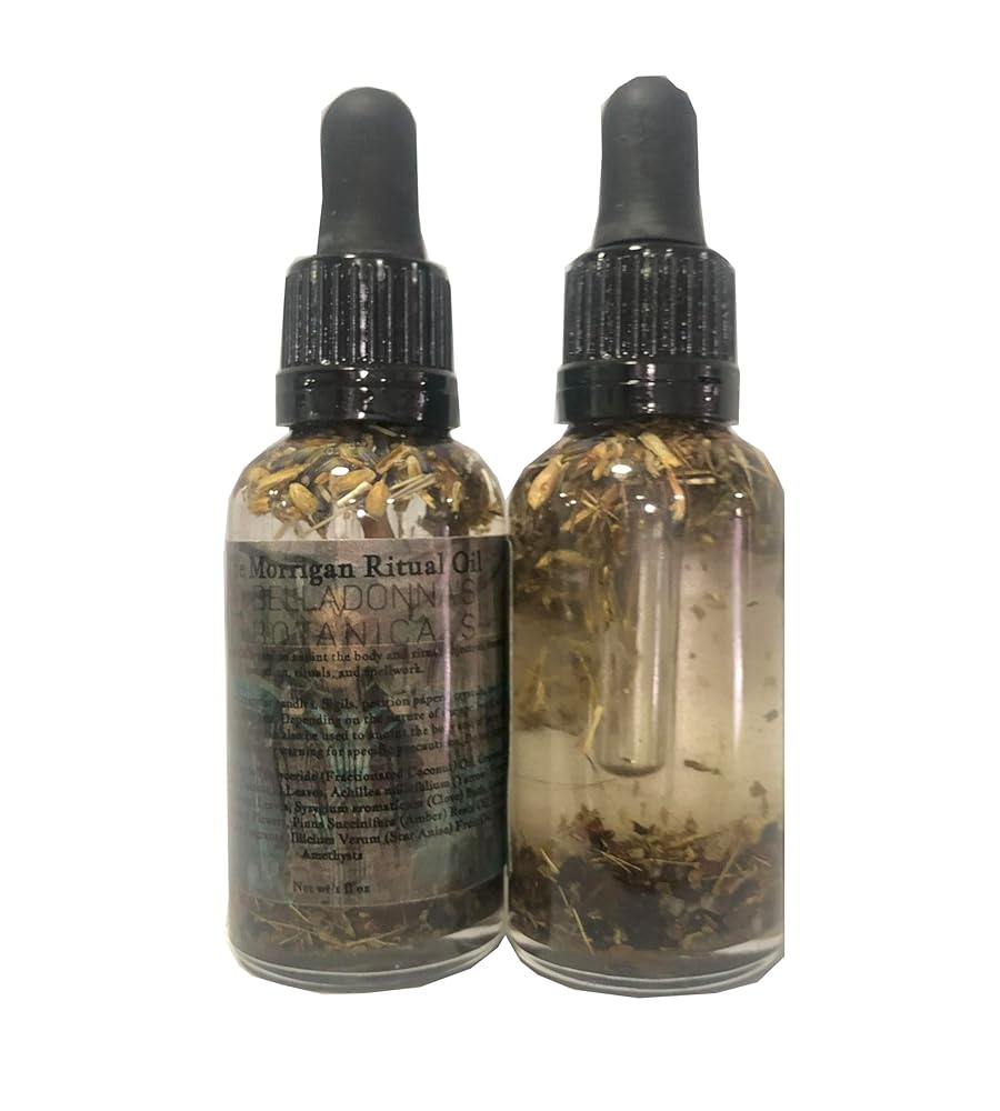 The Morrigan Ritual Oil is used to anoint the body and ritual objects when working with the Celtic Goddess in evocation rituals and spellwork.
