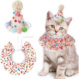 Unique Design: The cat bandana design with tassels and the hat design with colorful dots make your puppy cat look more fashionable and outstanding.