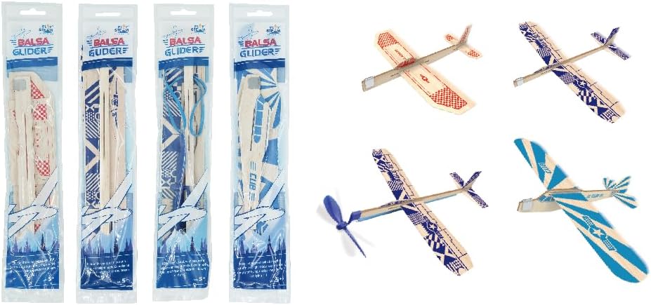 طقم الطائرات الخشبية البلسا - 4 حزمة الطراز الطائر والطائرات المطاطية الطائرات | لعبة في الهواء الطلق مجموعة للأطفال | الطائرات التعلم STEM | تجميع سهل لا حاجة الغراء