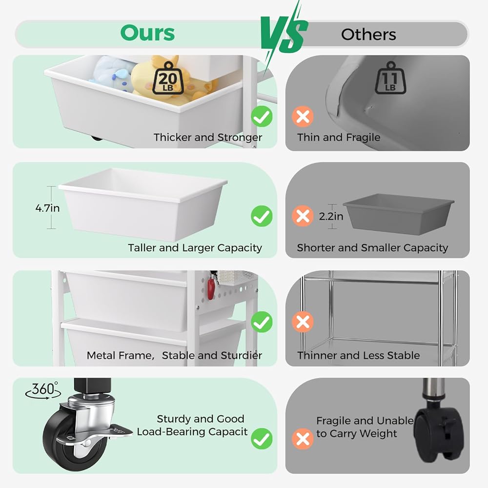 【قوي ودائم】: إطار عربة تخزين الدرج مصنوع من المعادن عالية الجودة ، مقاومة للماء ومقاومة للصدأ ، قوية ومستقرة ؛ يتميز الدرج بأدراج مواد عالية الجودة PP تتفوق على المنافسة ، والتي يمكن أن تصل إلى 20 رطلاً ؛ يتكون Tabletop من الخشب الطبيعي ، والذي يمكن أن يحمل ما يصل إلى 88 رطلاً. وفي الوقت نفسه ، تم تجهيز كل درج بشرائح ناعمة ، وسهلة الانسحاب والدفع.