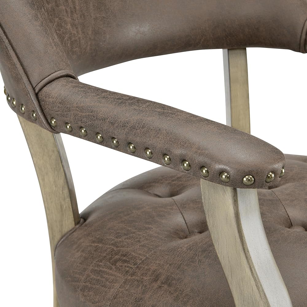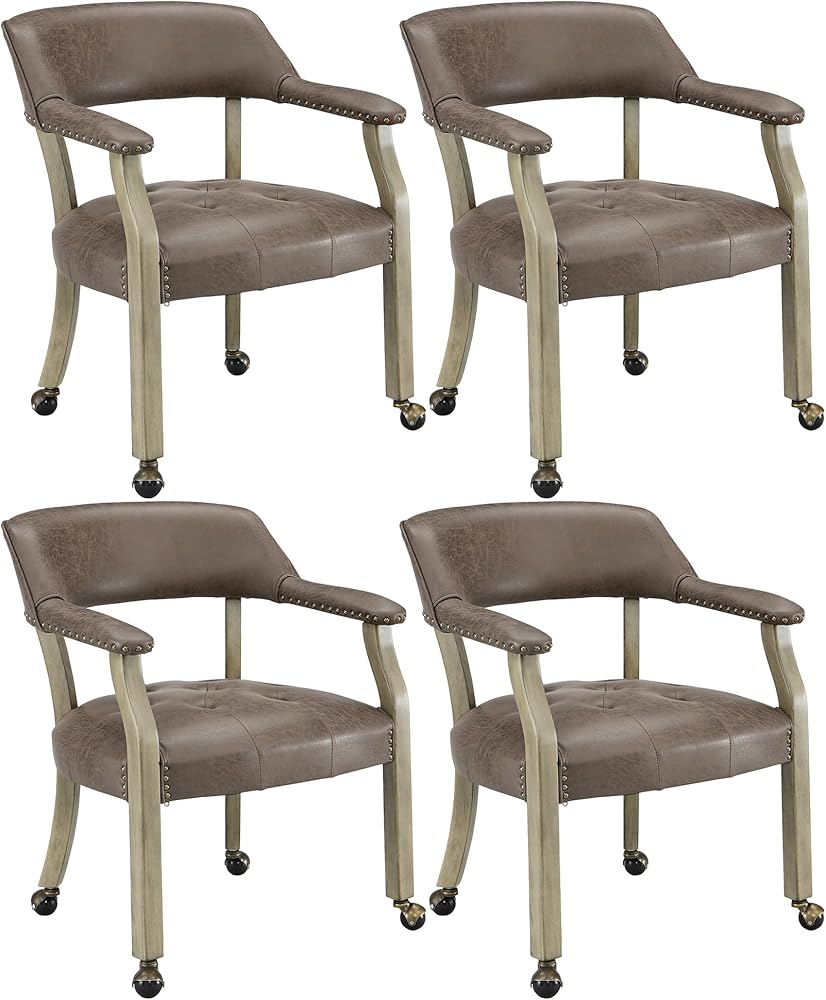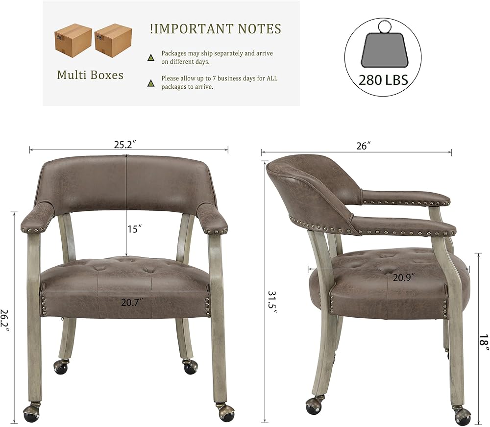 كراسي طعام كبيرة الحجم: مع 20.9 "DX20.7" WX18 "ح حجم المقعد المثالي والارتفاع ، فإنه يشعر رائع يميل ويصل قدميك إلى الأرض. مع 26.2" ارتفاع الأسلحة ، كرسي الطعام مع العجلات يناسب جيدا مع طاولات الطعام الأمريكية 28 "-30" H المطبخ. المقياس العام: 26 "DX25.2" WX31.5 "H. السطح الجلدي المزيف مقاومًا جدًا للخدمة لفترة طويلة مع ميزات وصمة عار مضادة للملفات.