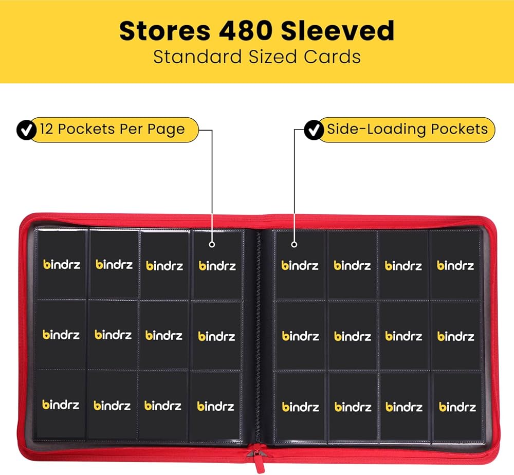 12 جيب سحاب الموثق ل 480 بطاقة تداول الأكمام - ألبوم جيوب تحميل جانبي - أرشيف مواد آمنة ومتوافقة مع TCG MTG و Sports Collectibles (RED)