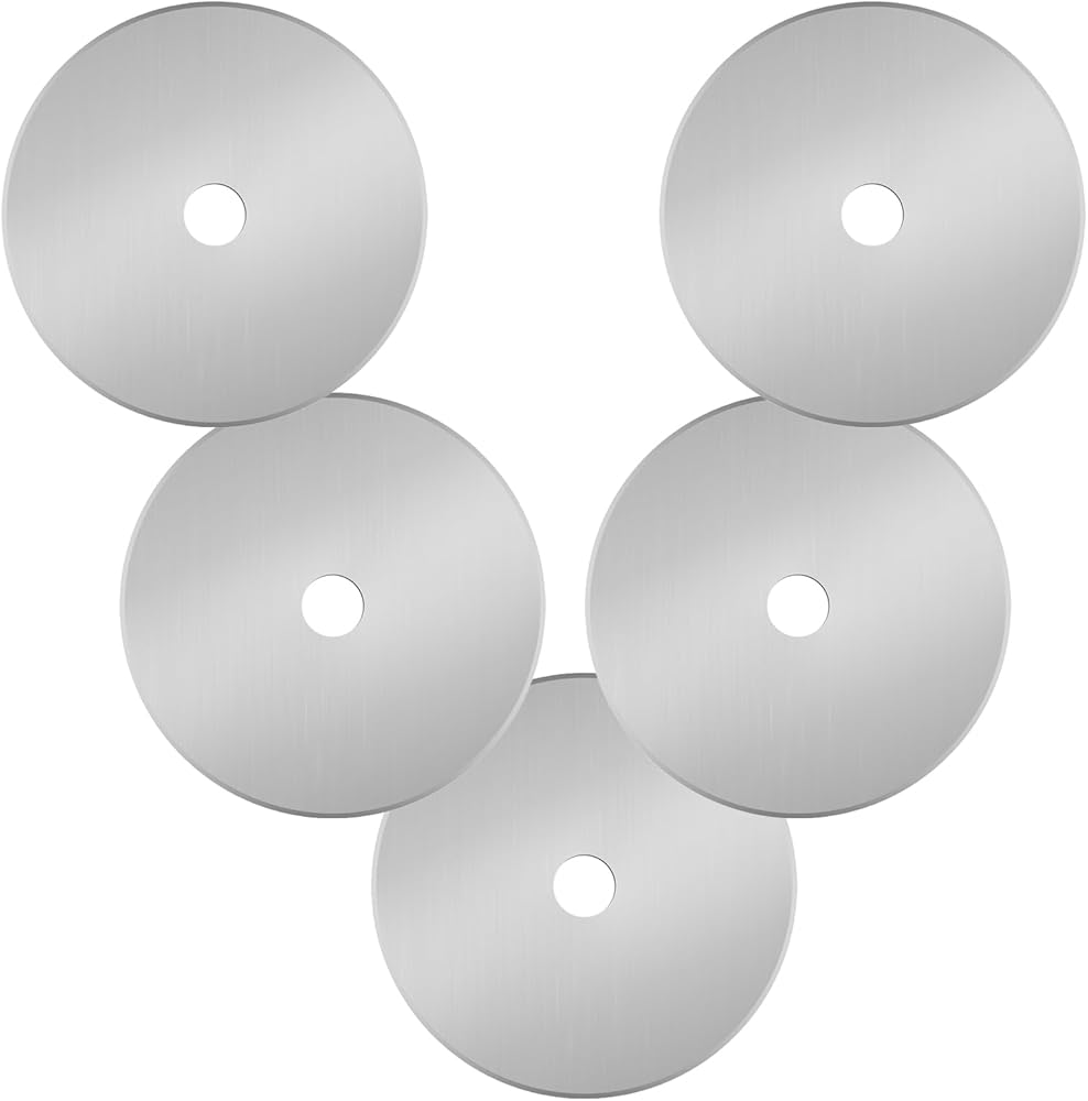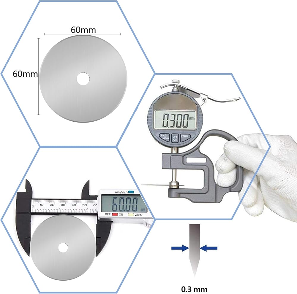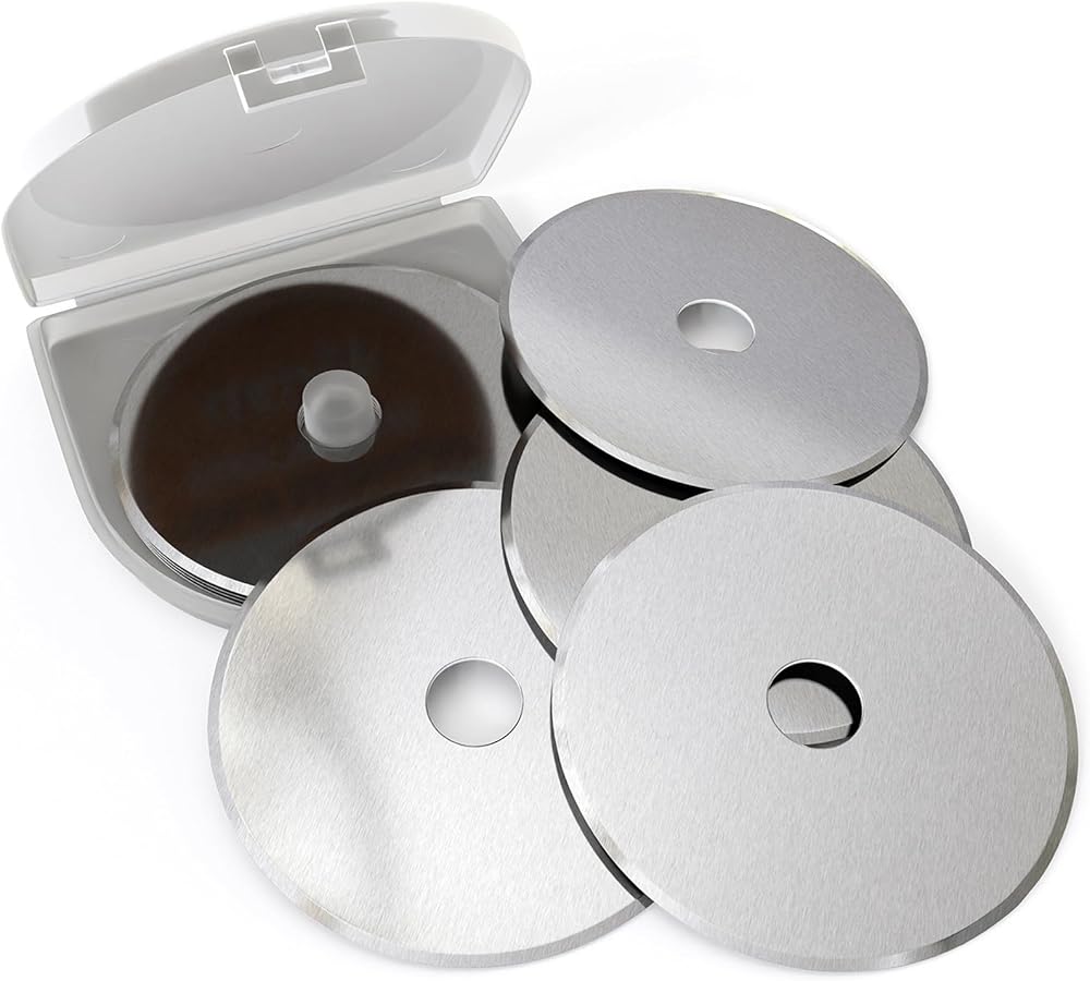 5. علامات القياس الدقيقة - تتميز كل شفرات القطع الدورانية 45 ملم (وأحجام أخرى) علامات مرئية للغاية ، وعلامات محفورة بالليزر على السطح. تتيح علامات الشفرات الدوارة قياسات دقة تقريبية وتخفيضات مستقيمة على النسيج والمواد دون حاكم - على أساس كفاءة خياطة اللحف والخياطة