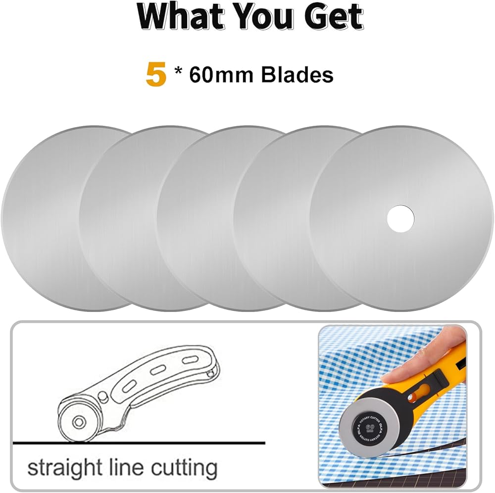 3. الحدة-شفرات القطع الدوارة الخاصة بنا مصنوعة من SKS-7 Steel & شحذ مع تقنية شحذ 4 مراحل. يوفر الحدة الطويلة الطويلة ، والاحتفاظ الحافة العليا ويقاوم التقطيع. قم بشرائح بسهولة من خلال 8-10 طبقات من القماش في ممر واحد