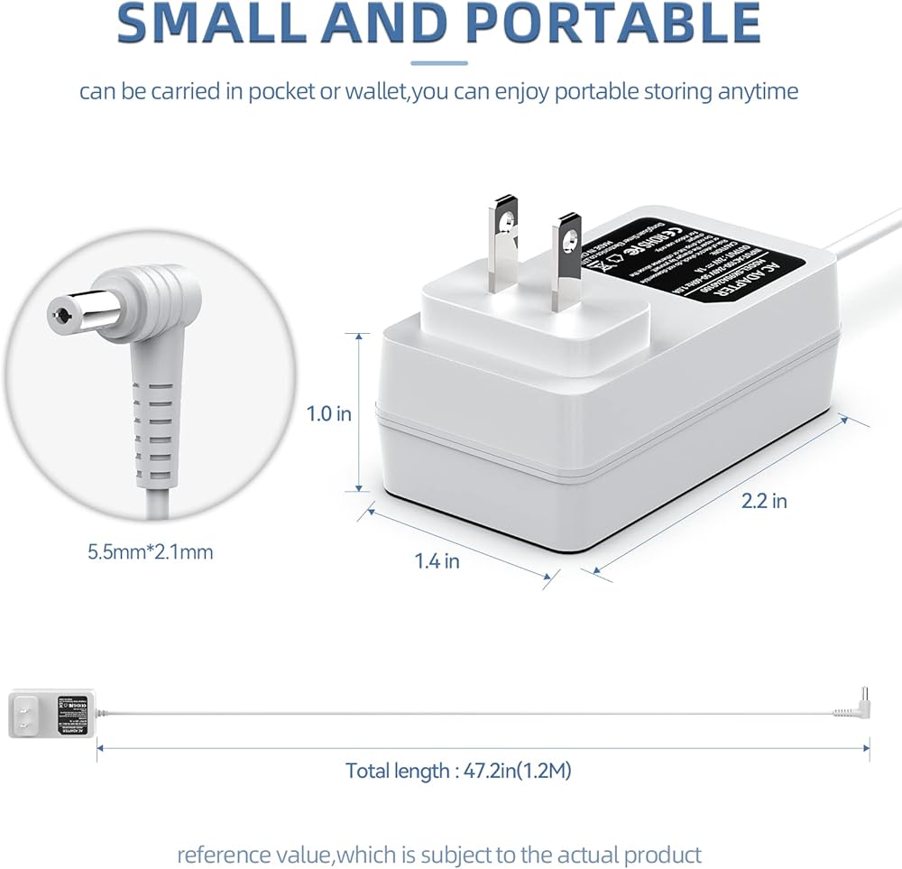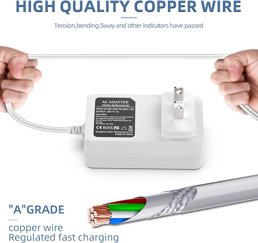 Specification:Input:AC100-240V 50-60Hz 1.0A Output:24V--1A Connection Size:5.5*2.1mm,Make sure the product matches your device charging port.