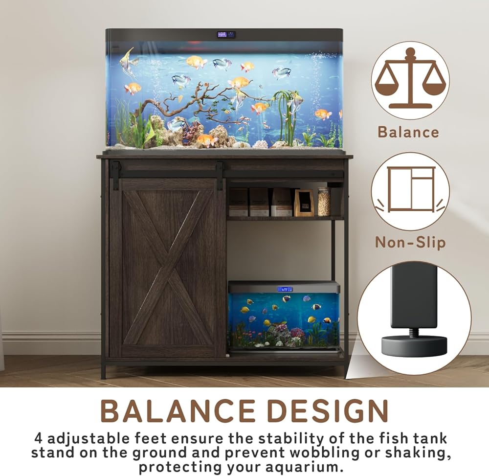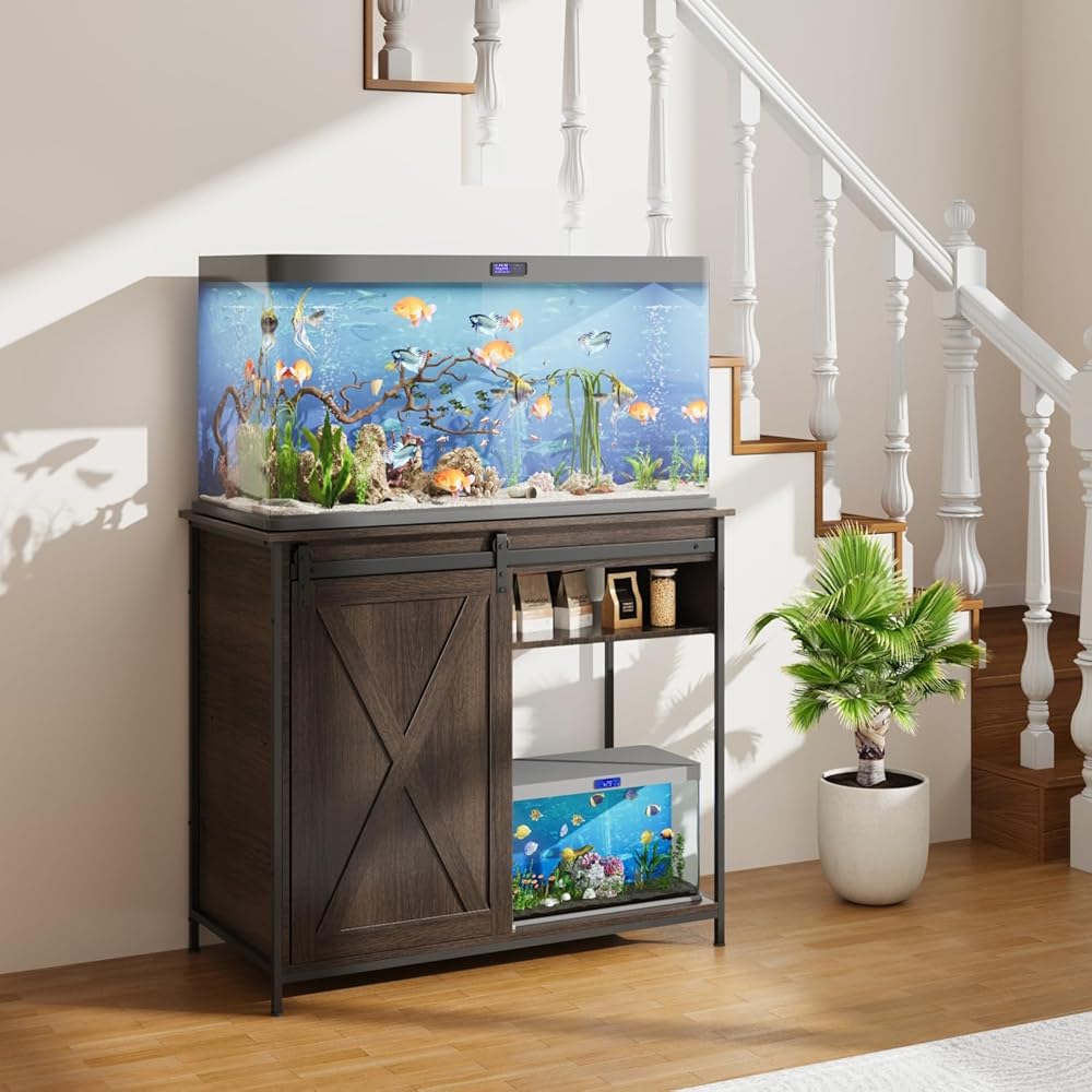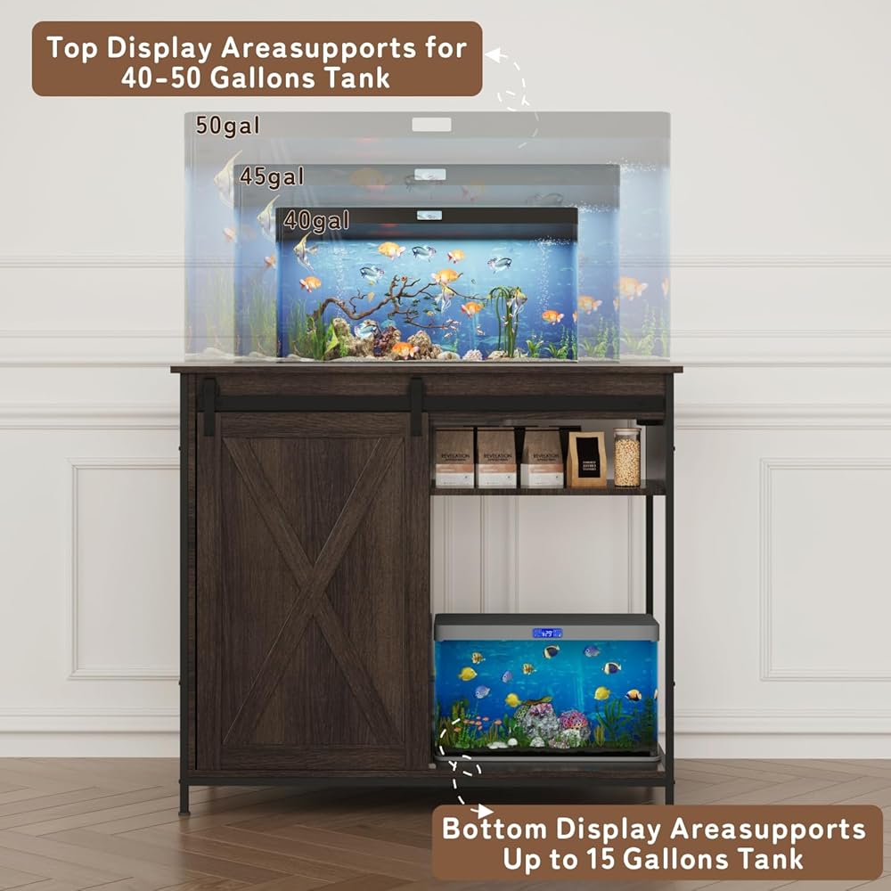 مناسبة لخزان الأسماك 55-75 جالون: يبلغ قياس حامل خزان الأسماك الكبير لدينا 52 "LX 19.7" W × 31.4 "H ، وهو قادر على الاحتفاظ 2 حوض أسماك وهو مناسب جدًا لمجموعة كبيرة من 55-75 جالون أو خزانات أسماك متعددة.
