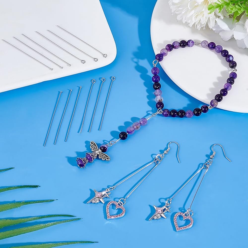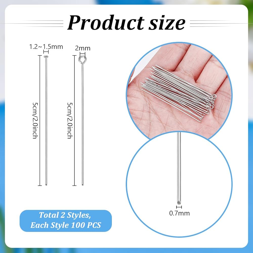 2 دبابيس رأس النمط: سوف تتلقى 100pcs دبابيس العين المفتوحة ودبابيات رأس مسطحة 100pcs ، 200 ٪ تماما. حجم حوالي 50x0.7mm. كمية كافية وحجم مناسب لتلبية احتياجاتك من صنع جميع أنواع الأقراط والأساور والقلائد والمجوهرات الأخرى