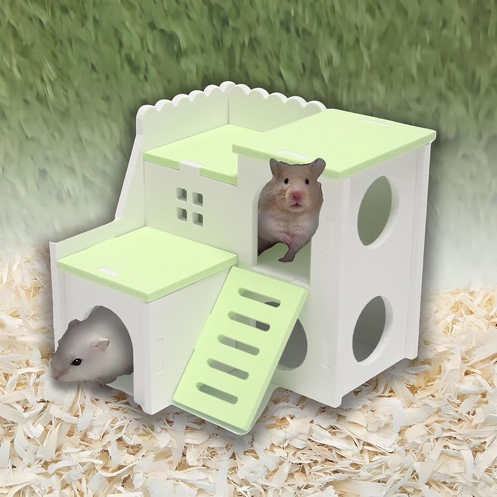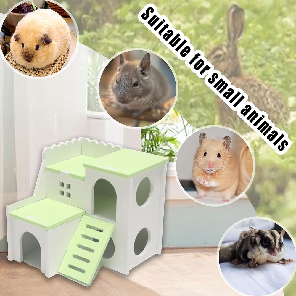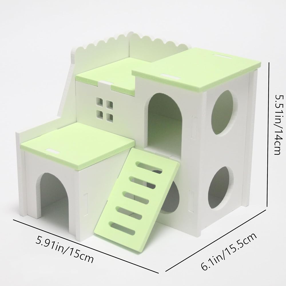 Compact Playground: This adorable wooden house measures 5.9*6.3*5.5 inches (L x W x H), meticulously crafted for small pets. It's an ideal dwelling for hamsters, gerbils, mice, and other similarly sized companions.
