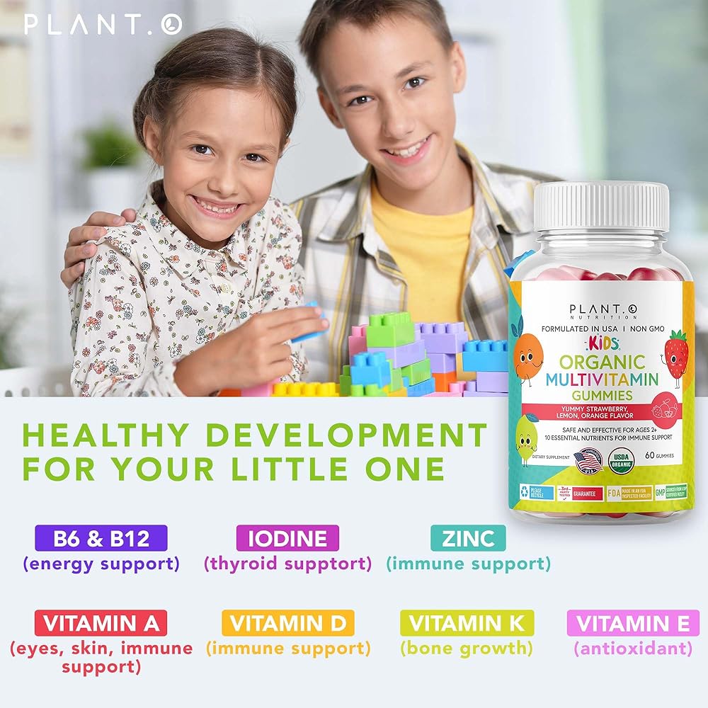 علكات الفيتامينات العضوية للأطفال. تحتوي علكات فيتامينات الأطفال العضوية التابعة لوزارة الزراعة الأمريكية على جميع الفيتامينات الأساسية والمعادن النزرة ومضادات الأكسدة للمساعدة في دعم النمو والتطور في السنوات الأولى وما بعدها.