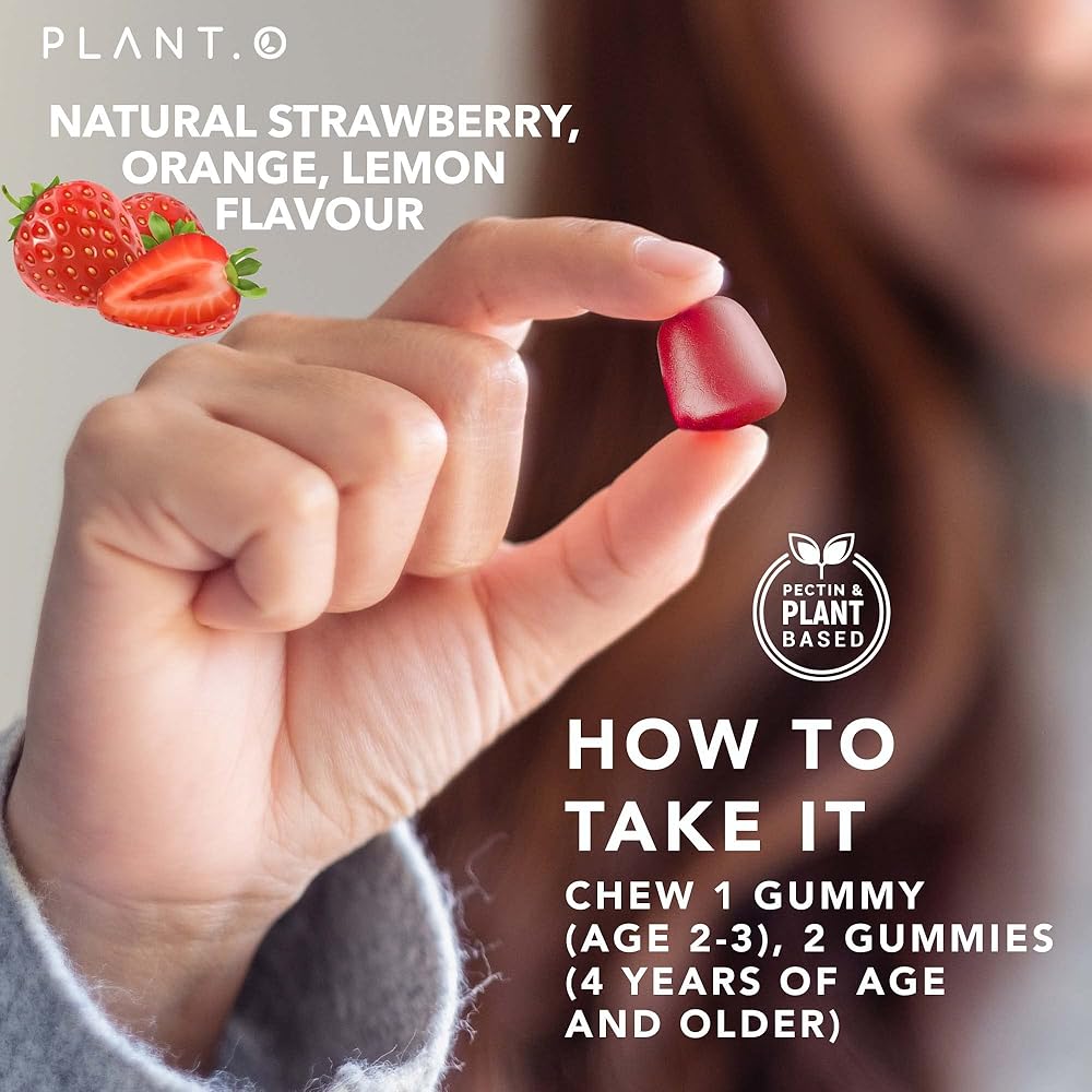 PLANT.O NUTRITION حلوى عضوية متعددة الفيتامينات للأطفال [فيتامينات لذيذة للأطفال من وزارة الزراعة الأمريكية] مع فيتامين C وD وA وB والزنك للمناعة والنمو والدماغ والطاقة والنباتية وخالية من الغلوتين، 60 قطعة مضغ