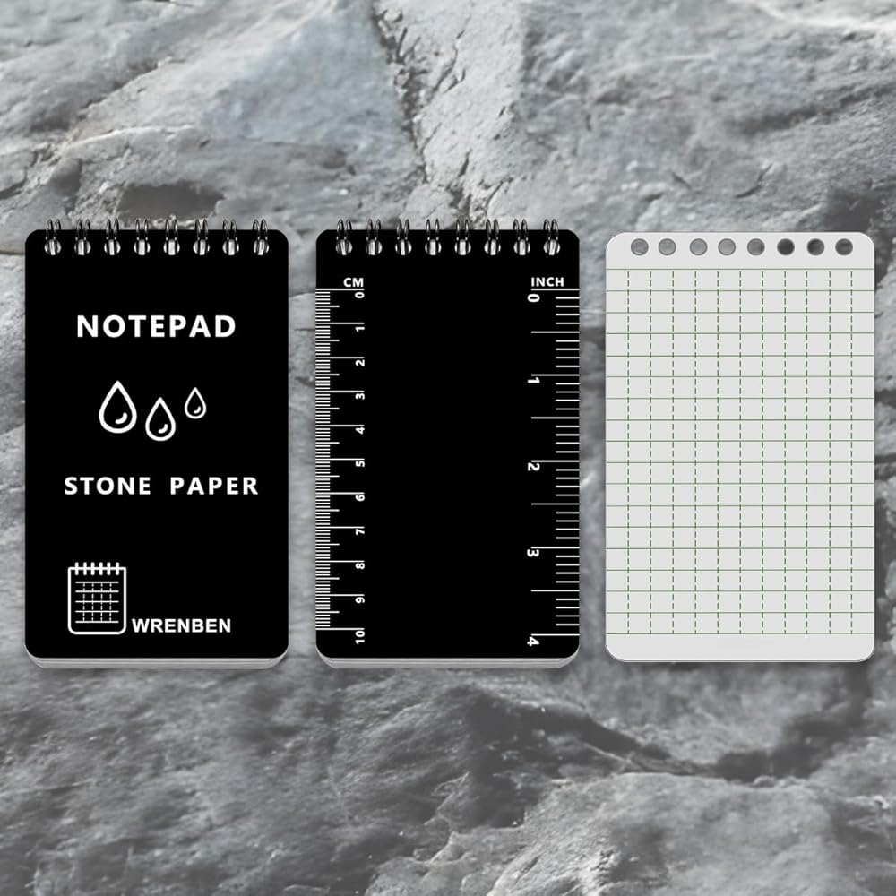 الورق الحجري: يتكون هذا الكمبيوتر الدفتري الحلزوني من ورق حجري مع خصائص العزل المائي ، والصلابة القوية ، وقابلية التحلل الحيوي. لا يزال خط اليد على الورق الحجري الرطب واضحًا.