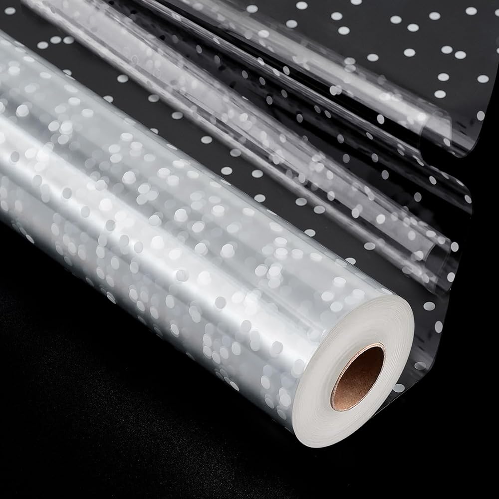Timeuprise 120 قدم لفائف خلفية Cellophane صافية (120 قدم × 34 بوصة) ، 3 مل مللي ثخن من غير منتظم النقطة البيضاء هدية الالتفاف لفة الورق لفة باقة عيد الميلاد