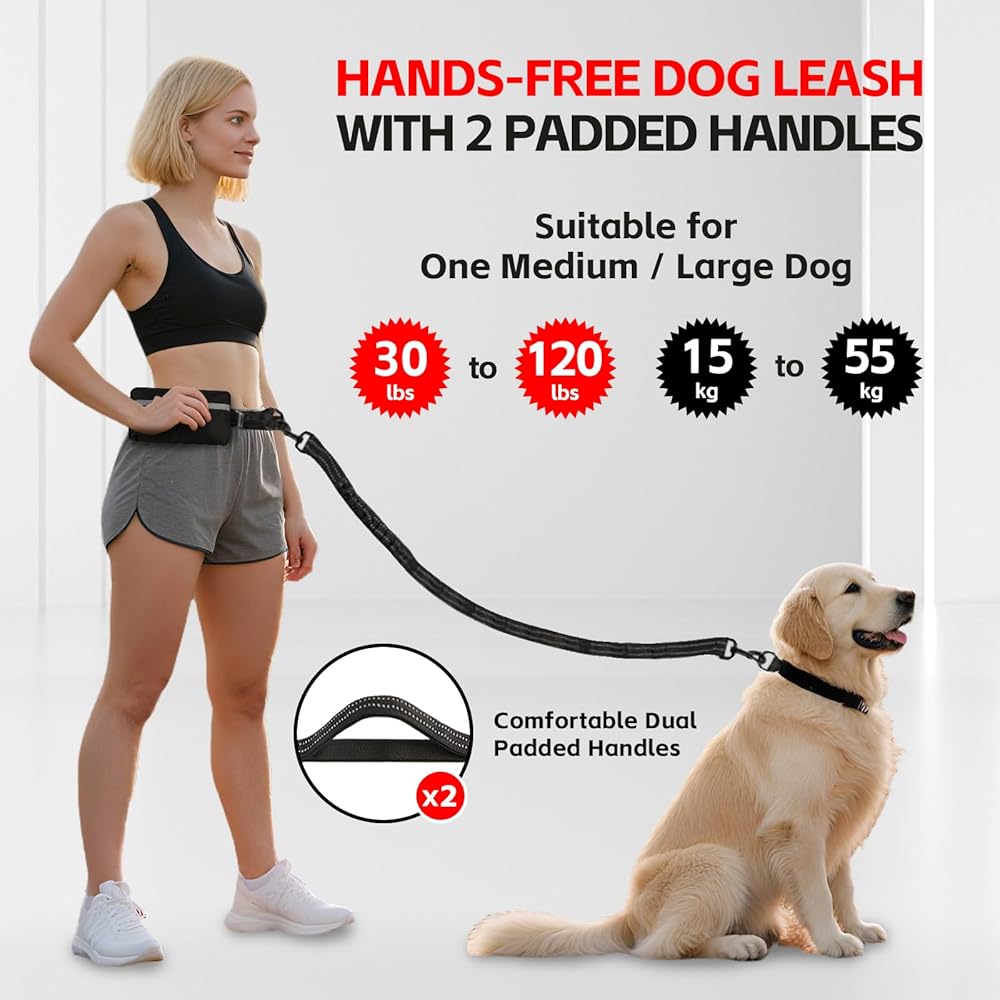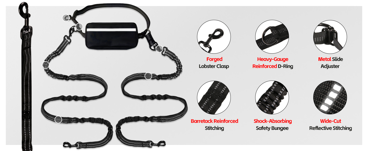 【مقابض مزدوجة و bungee للسحب المفاجئ】 اكتسب تحكمًا فائقًا مع الكلب الذي يركض اليدين. يعمل سلك البنجي الذي يمتص الصدمات ومقابض مبطنة مريحة بمثابة عازلة ضد الطعنات المفاجئة ، مما يتيح لك أمرًا إضافيًا في أي موقف ، وهو ميزة يجب أن تكون لأي حزام مشي للكلاب.