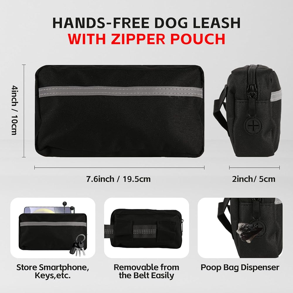 【حقيبة سستة مريحة للضروريات】 إبقاء يديك مجانية تمامًا! يأتي هذا المقود من الخصر للكلاب المشي 2 الكلاب مع حقيبة سحاب واسعة قابلة للفصل على حزام الخصر المقود الكلب ، بحجم مثالي لحمل إكسسوارات المشي للكلاب: الهاتف ، والمفاتيح ، وأكياس أنبوب ، وعلاج أثناء مغامراتك.