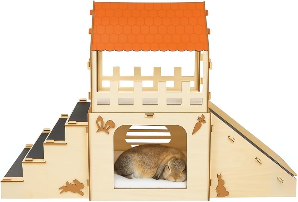 مخبأ أرنب كبير كبير ، قلعة أرنب مريحة مع حصير الصوف ، مخبأ أرنب خشبي ، منزل أرنب داخلي ، شينشيلا ، منزل خنزير غينيا