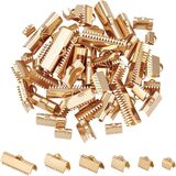 UNICRAFTALE 60Pcs 6 Styles Rectangle Ribbon Crimp Ends with Loop Stainless Steel Ribbon Clamp Crimps Leather Pinch Crimp Ends Golden Fastener Clasp Leather Crimp Ends for Jewelry Making 6~10x6.5~25mm