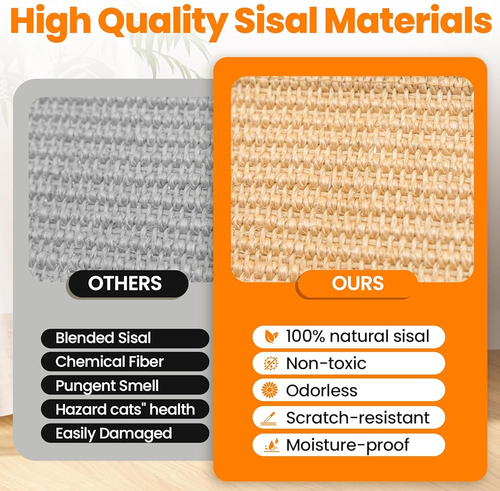 SISAL الطبيعي: يتكون سطح خدش القط من سيزال عالي الجودة مستورد من البرازيل ، وهو مقاوم للخدش ولا يقلل من القطط مع تجربة خدش مرضية مع حماية أثاثك.