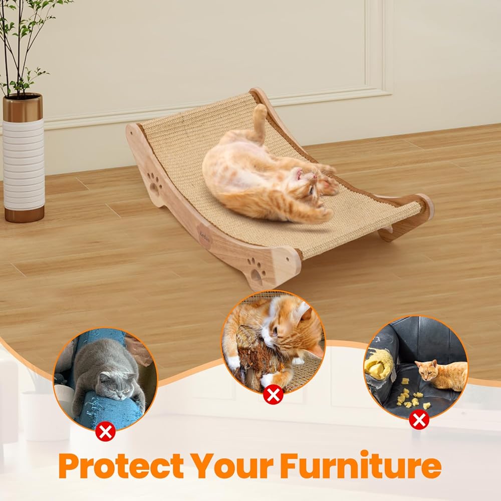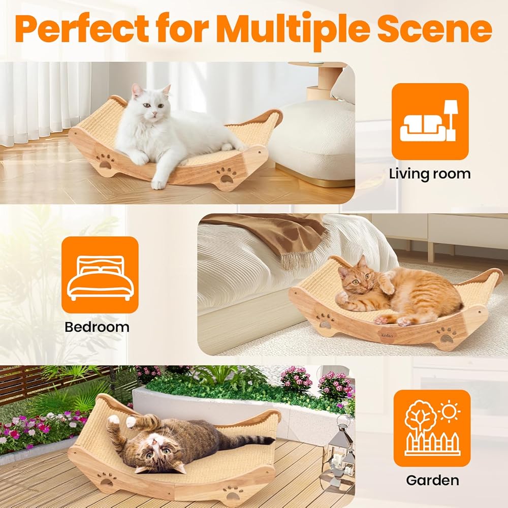 أثاث القطط الخشبي آمن وغير ضار : سرير خدش القطط السيسال جميع المكونات (بما في ذلك العبوة) مصنوعة من مواد طبيعية (باستثناء مسامير معدنية مثبتة). أنها لا تحتوي على أي مواد كيميائية سامة أو روائح غير سارة. إنها قابلة للتحلل بشكل طبيعي ، مما يضمن صحة أنت وقطتك.
