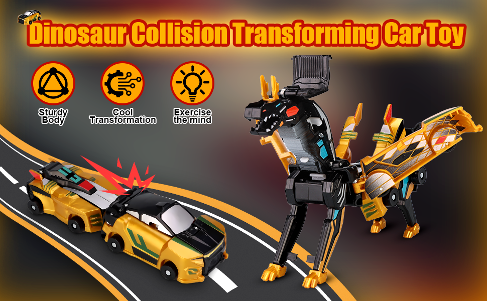 تصادم تحويل سيارة ديناصور ، سيارات مغناطيسية 2 في 1 تتحول إلى دينو ، لعبة ديناصورات روبوت للأطفال 3-5 هدية عيد ميلاد عيد الميلاد المثالية للبنين (الذهب اللامع)