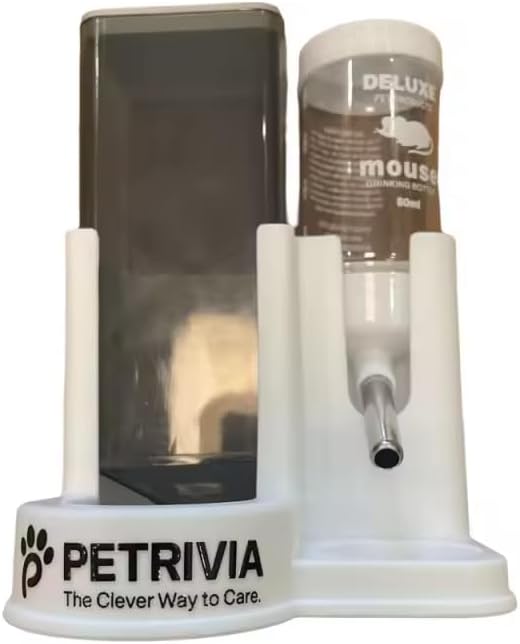 Keep your little pets healthy and happy with the PETRIVIA Small Animal Feeder and Water Dispenser Set. This clever 2 in 1 design combines a dry food storage container with a leak proof water bottle, giving hamsters, guinea pigs, rabbits, and other small pets continuous access to fresh food and clean water. The no drip stainless steel spout prevents leaks and keeps cages dry while the transparent food container makes it easy to see when it's time to refill. Compact, hygienic, and made from durable BPA free materials, this feeding station is simple to clean and perfect for daily use. 200 ml food capacity, 80 ml water capacity PETRIVIA – The Clever Way to Care.