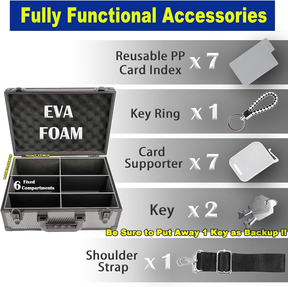 • ✅ 【الحماية المتميزة والمتانة】 تم تصميم حالة بطاقة التداول بالمواد المتميزة والهندسة الدقيقة ، وإطار السبائك الوعرة ، وألواح MDF المقوى ، والبطانة الرغوية EVA الممتصة الصدمة ، وهي تنشئ حالة حماية لبطاقة القلعة على مجموعتك ضد التأثيرات ، الرطوبة ، الغبار. إغلاق قفل المفاتيح المزدوج والأرباك الشاقة ، تم تصميمها للحفاظ على البطاقات في حالة بدائية لسنوات.