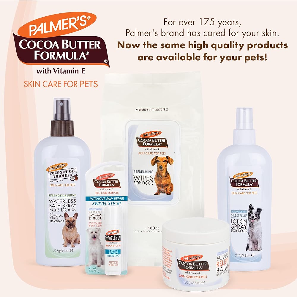 PALMER'S COCOA BUTTER FOR PETS: Your favorite Palmer's cocoa butter formula is now available for pets in the form of Palmers cocoa butter refreshing dog wipes