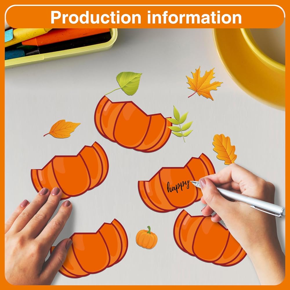 Transform Your Space with Our All-Inclusive Fall Bulletin Board Kit! This complete set features everything needed to create a vibrant autumn display: A charming "WELCOME TO OUR PUMPKIN PATCH" letter banner, 16 richly colored autumn leaves, 10pumpkin head frames,4 festive pumpkin accents, rustic hay bale decorations, and 4.8 meters of coordinating border trim. Crafted from premium fade-resistant cardstock, these decorations maintain their vivid colors season after season without tearing.