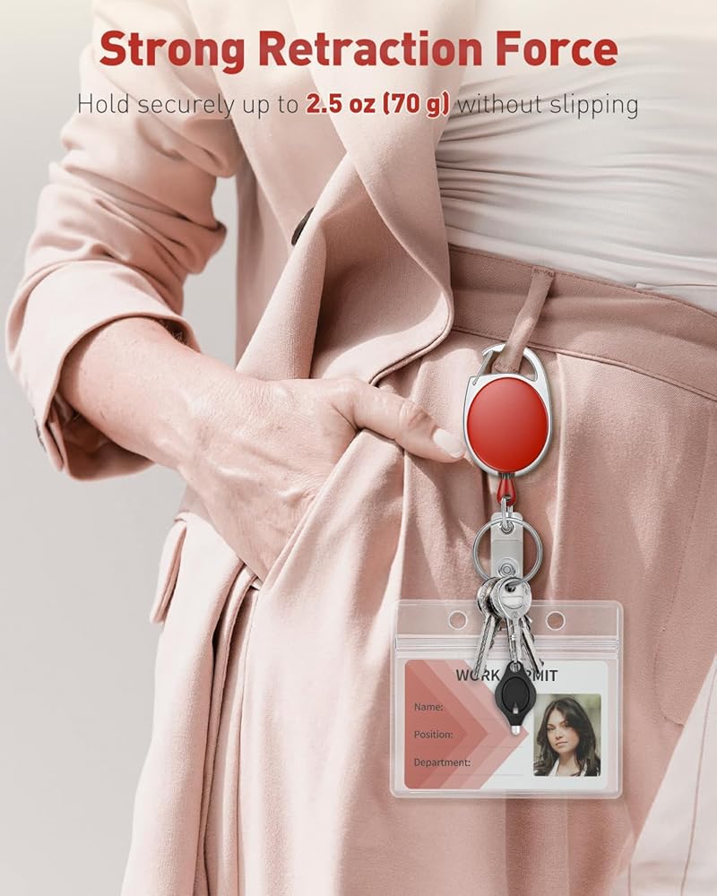 • حبل النايلون القوي: إن حبل النايلون المثير جيدًا يمكن أن يمتد إلى 24 بوصة ، مما يجعل من السهل فتح الباب دون إزالة الشارة أو المفتاح. اسحب بطاقتك بسرعة لجعل اللكم داخل وخارج أسرع.