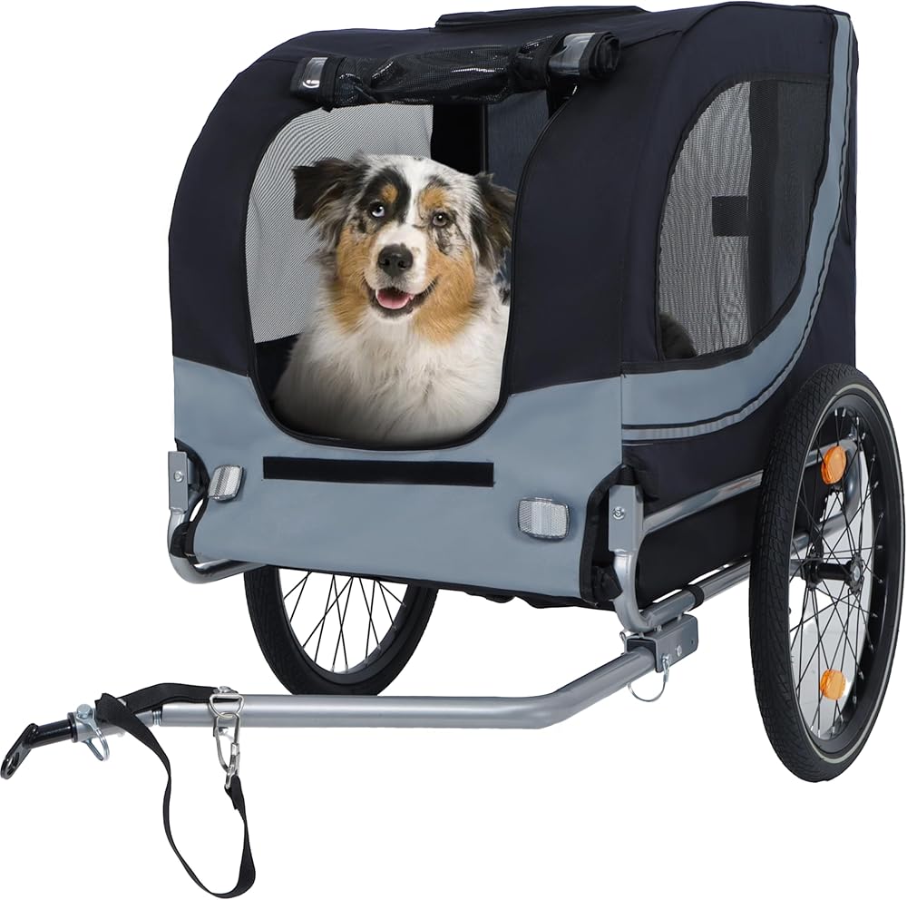 المتانة الاستثنائية والداخلية الفسيحة المصنوعة من نسيج أوكسفورد القاسي وإطار فولاذي قوي ، يمكن لمقطورة دراجة الكلاب هذه التعامل مع الطقس القاسي وبقع الماء. تتناسب المقصورة الكبيرة من سلالات صغيرة إلى متوسطة الحجم مثل البيجل ، والكوليس الحدودية ، والبولي. مع سعة حمولة منتظمة 88 رطلاً وحد أقصى 130 رطلاً ، فإنه يضمن ركوبًا آمنًا للحيوانات الأليفة النشطة.