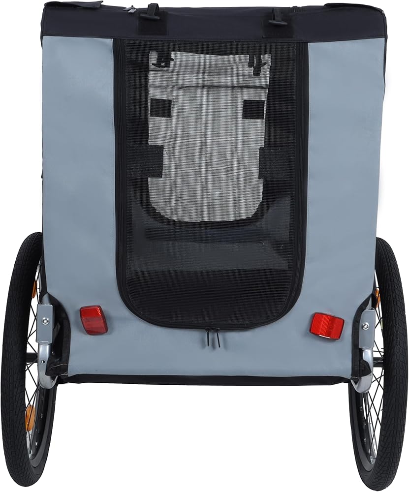 توفر الأداء والسلامة في جميع التضاريس إطارات مملوءة بالهواء 20 بوصة رحلة ناعمة على المطبات. حراس غلاف المطر PVC المقاوم للماء ضد المطر ، وشرائط العجلات العاكسة تعزز الرؤية في الضوء المنخفض. تمنح اللوحة الأمامية لفة للحيوانات أليفة عرضًا واضحًا لمغامرة مثيرة.