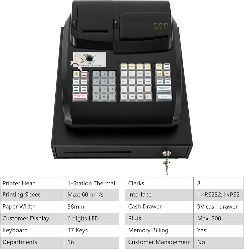 • Highly Functional: This product can not only be used for simple cash registers but also has multiple sales methods and reporting functions. The universal thermal printing port is easy to use, quickly and smoothly printing various receipts and reports for you