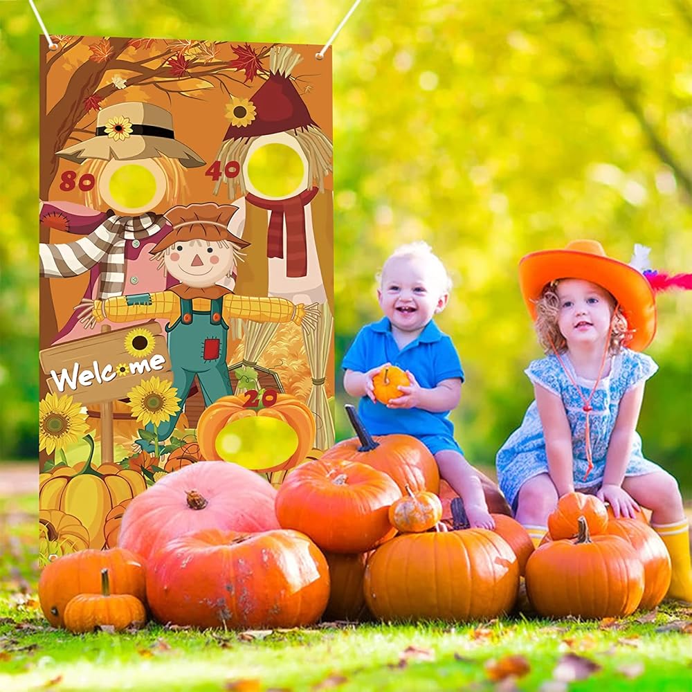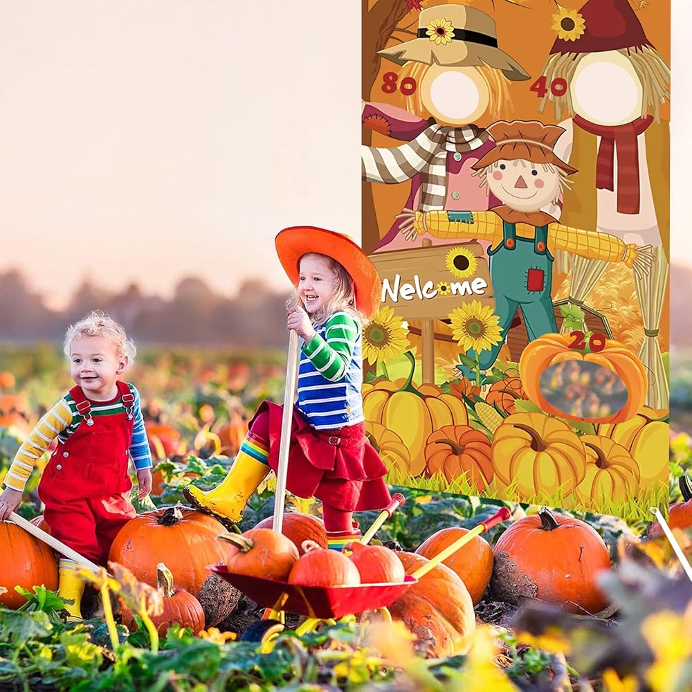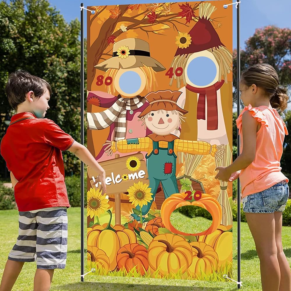 Thanksgiving theme design: our fall Thanksgiving bean toss game is well designed with autumn scene background,pumpkins, sunflowers, scarecrow, etc;The whole picture is filled with pleasant Thanksgiving day atmosphere and precious meaning,it's interesting for you play this harvest carnival game with your little ones, which is ideal for toddlers and adults, nice for fall harvest party indoor or outdoor activity