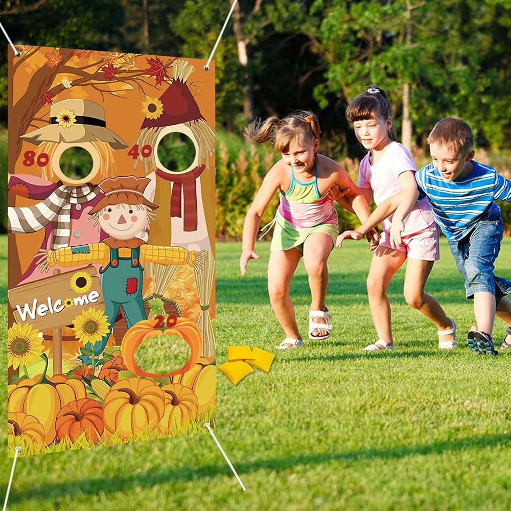 Happy Thanksgiving Day Bean Toss Game with 3 Bean Bags Autumn Throwing Banner Indoor Outdoor Party Games Toss Game Birthday Party Supplies for Kids Carnival Party Decoration