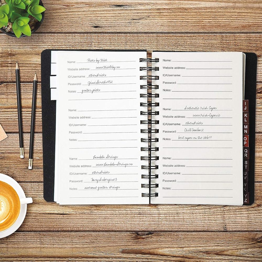 Keep your personal information safe from digital threats by storing your sensitive details offline. This discreet, low-tech password organizer ensures your login information remains protected and secure, offering a worry free way to record and manage passwords online.