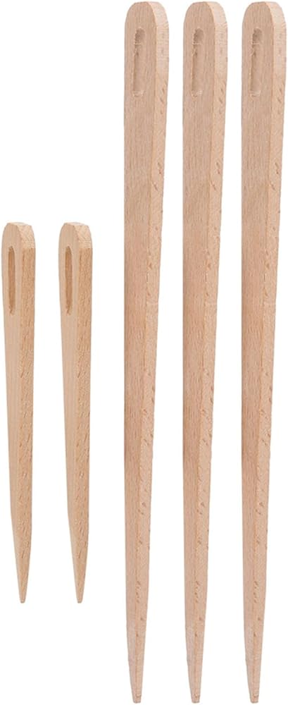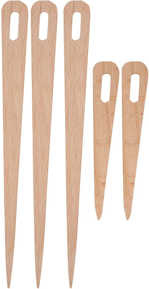 Product Specifications: There are 5pcs weaving needles, 3pcs large sizes: length: approx. 20cm / 7.9in. 2pcs small sizes: Length: Approx. 11cm / 4.3in. Wood weaving tools set has same width: approx. 1.6cm / 0.6in., same thickness: approx. 0.4cm / 0.2in