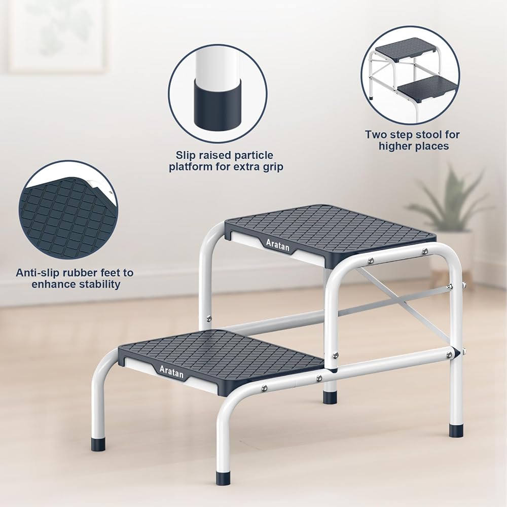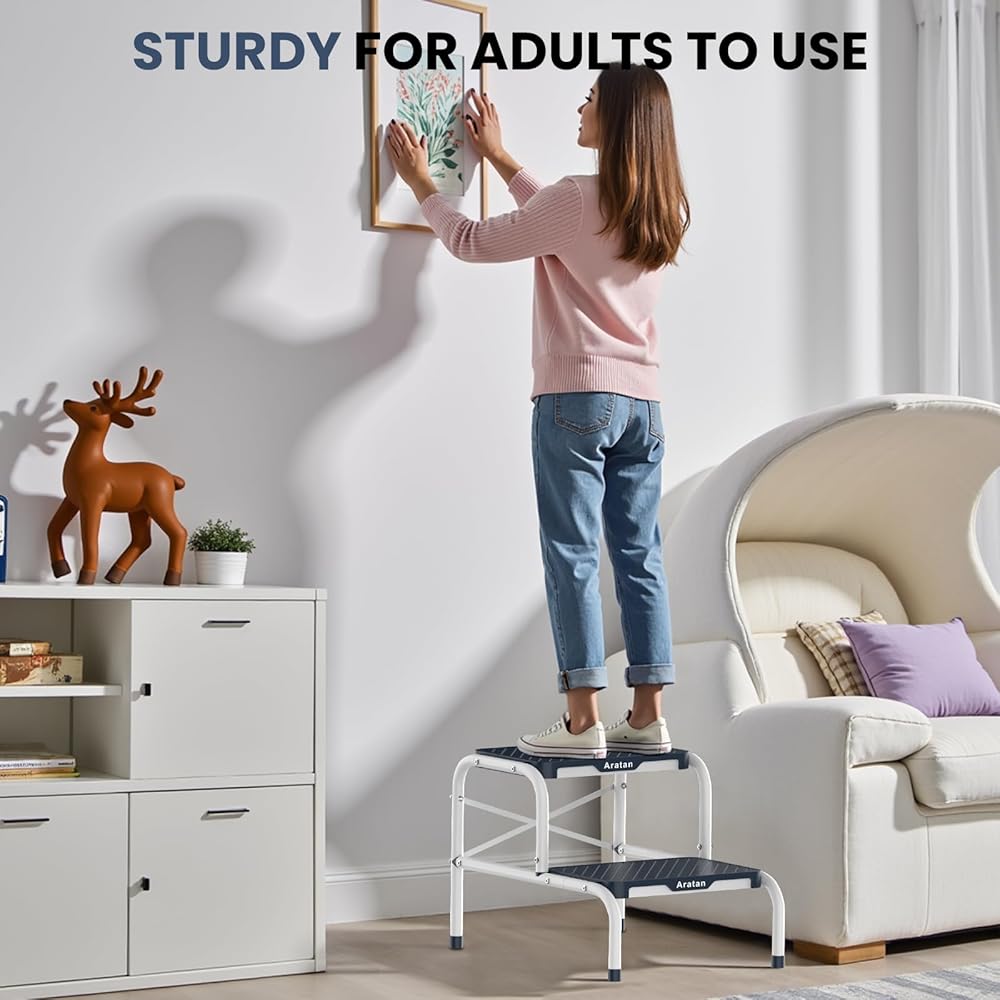 • Easily Assemble: Equipped with manual and free tools, you can easy to put the metal step stool together. Upgrade your step stool experience with the Aratan step stool. Note:Equipped more screws in package, please choose suitable one to install.
