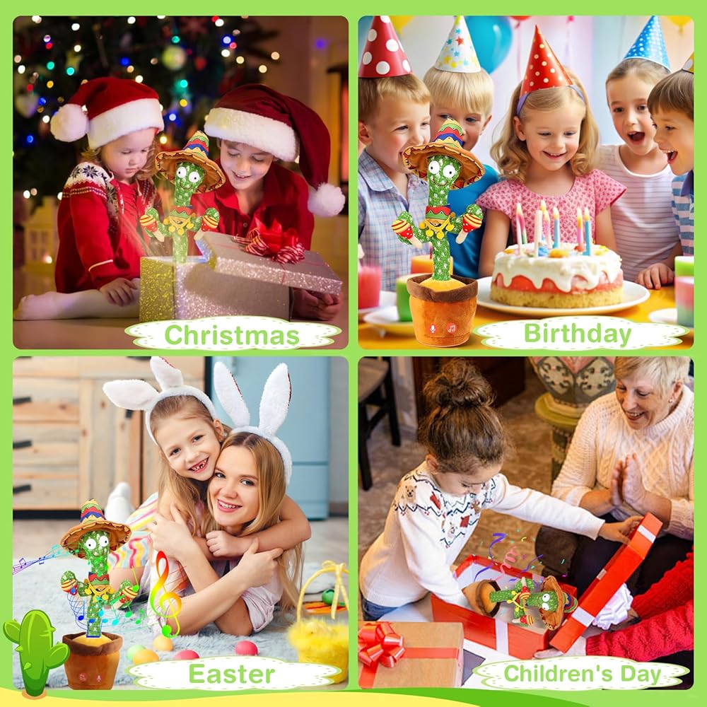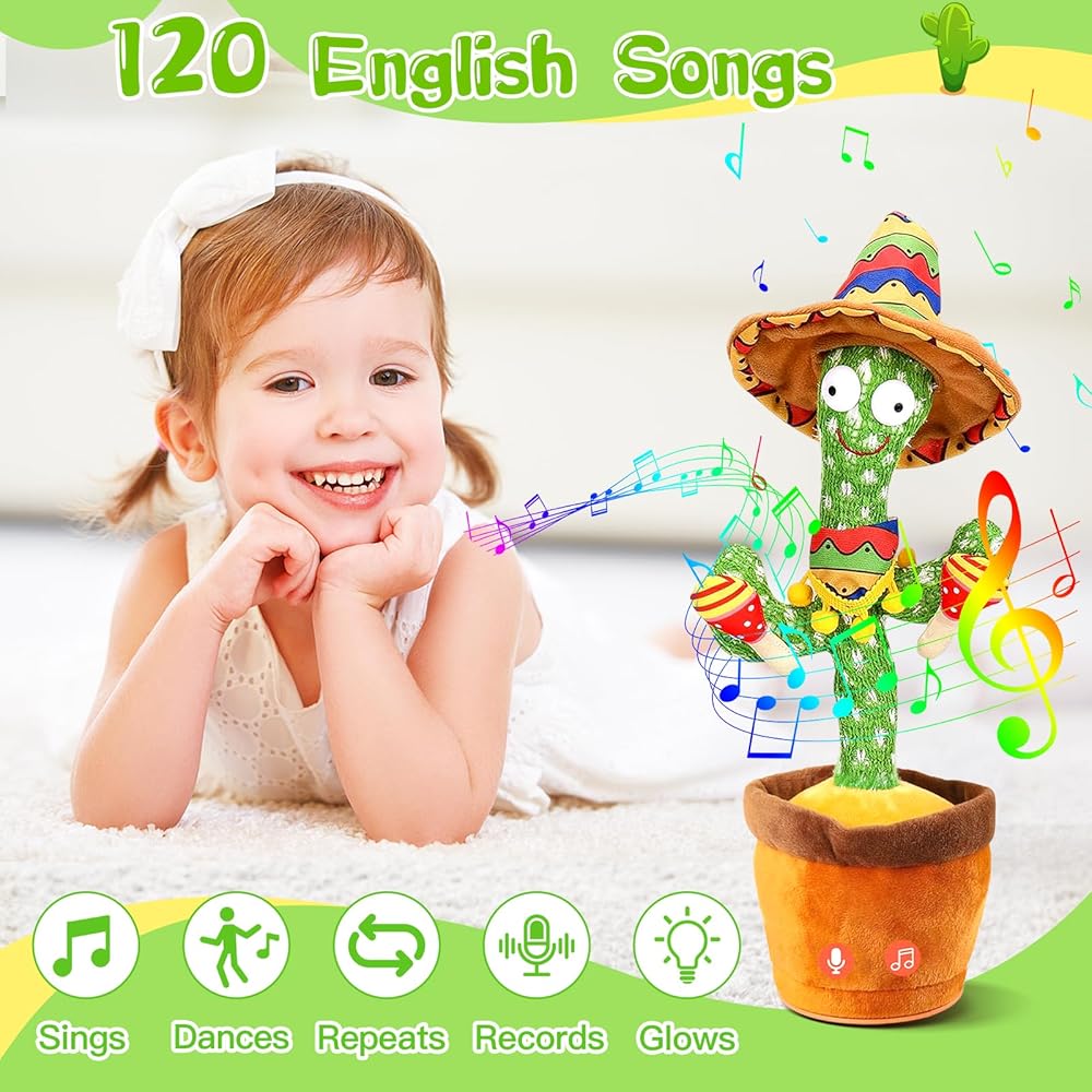 [Dancing Baby Toy ]Abcrand Dancing Talking Cactus Toys: Our Smart Cactus Toy stimulates your child's love for singing and dancing, while improving rhythm and coordination. It sings 120 delightful songs while dancing to the rhythm, accompanied by mesmerizing LED lighting effects that sync with its movements.