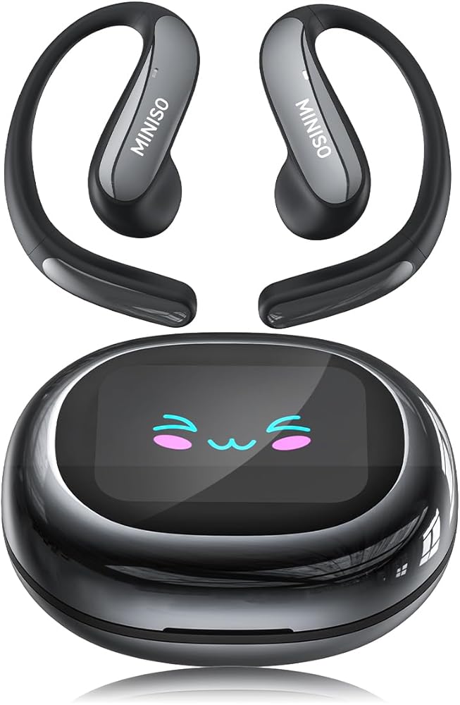 MINISO MS203 ترجمة سماعات الأذن مفتوحة سماعة رأس الأذن Bluetooth 6.0 OWS AI تدعم 134 لغة براعم الأذن اللاسلكية مع earhooks IPX5 Bluetooth Bluetooth Black (مع AI)