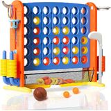 مجموعة ألعاب Connect Giant 4-in-A-Row ، لعبة Jumbo Yard Game ذات الارتفاع القابل للتعديل مع لعبة غولف ، وطوق كرة السلة ، و Ring Toss & Mesh Pocket ، و Connect Connect في داخلي وخارجي للأطفال للبالغين