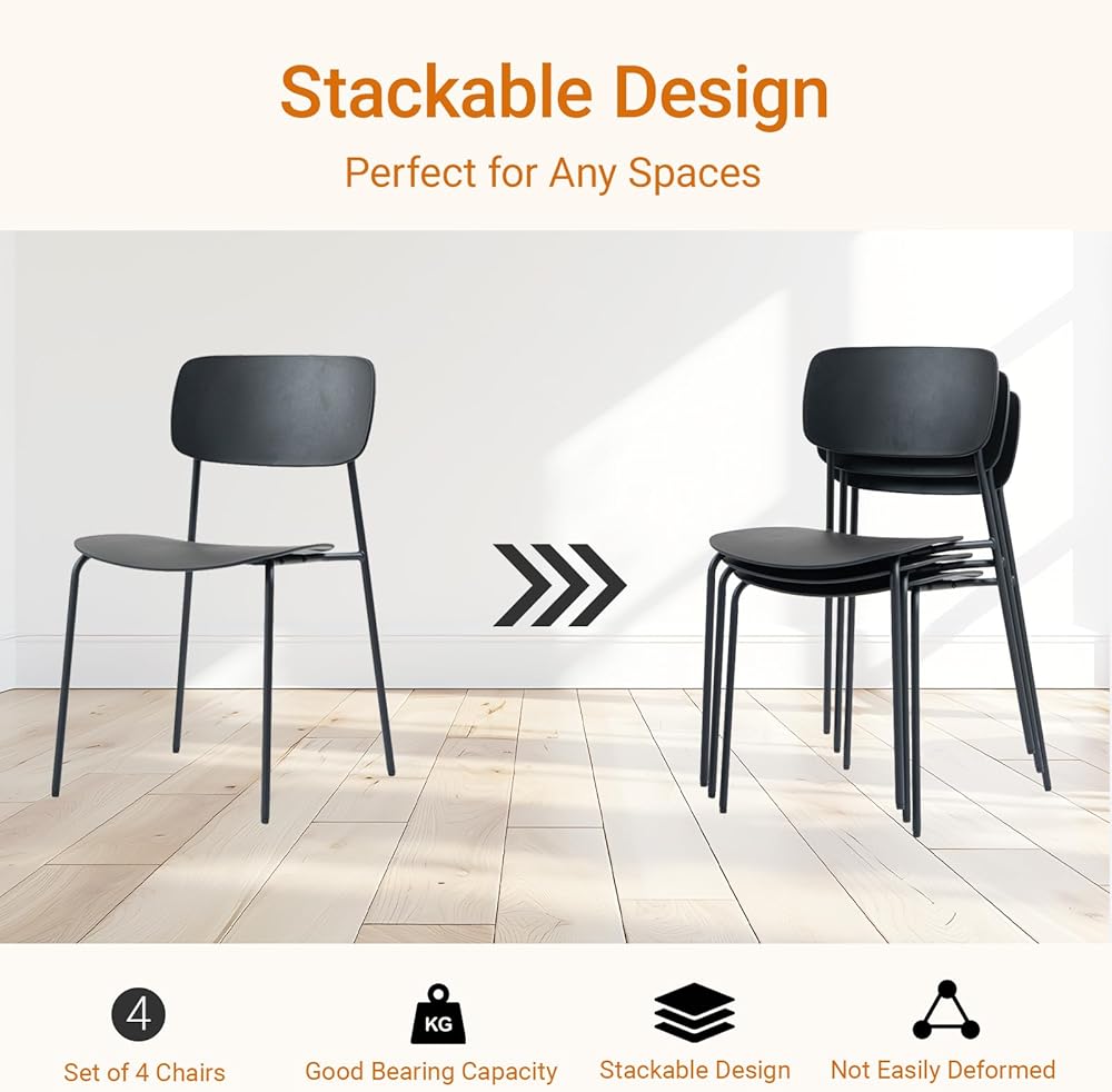 تم تصميمها لتدوم مع أرجل معدنية مقواة ، يمكن أن تصل مجموعة كراسي التراص من 4 إلى 300 جنيه لكل منها. وسادات القدم مصنوعة من المطاط لإسكات وحماية جميع أنواع الأرضيات