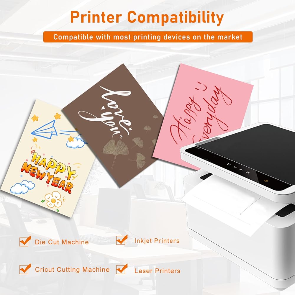 ▶ توافق الطابعة-يتوافق مخزون بطاقة طابعة السميكة لدينا مع معظم أنواع طابعات الليزر ، ونفاة النافثة النافثة ، وآلات قطع القالب ، وآلات قطع CRICUT. يرجى التأكد من أن الطابعة الخاصة بك يمكن أن تطبع على 230gsm قبل الطلب