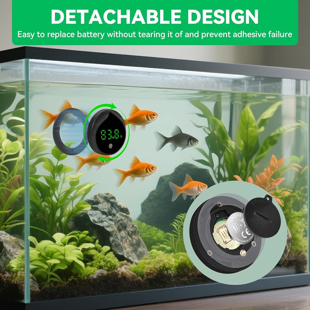 قابلة للإزالة: يمكن إزالة مقياس حرارة خزان السمك من خزان السمك عن طريق تدويره ، وتثبيت غطاء البطارية بمسامير ، ومزودة ببراغي لاستبدال البطارية بسهولة.