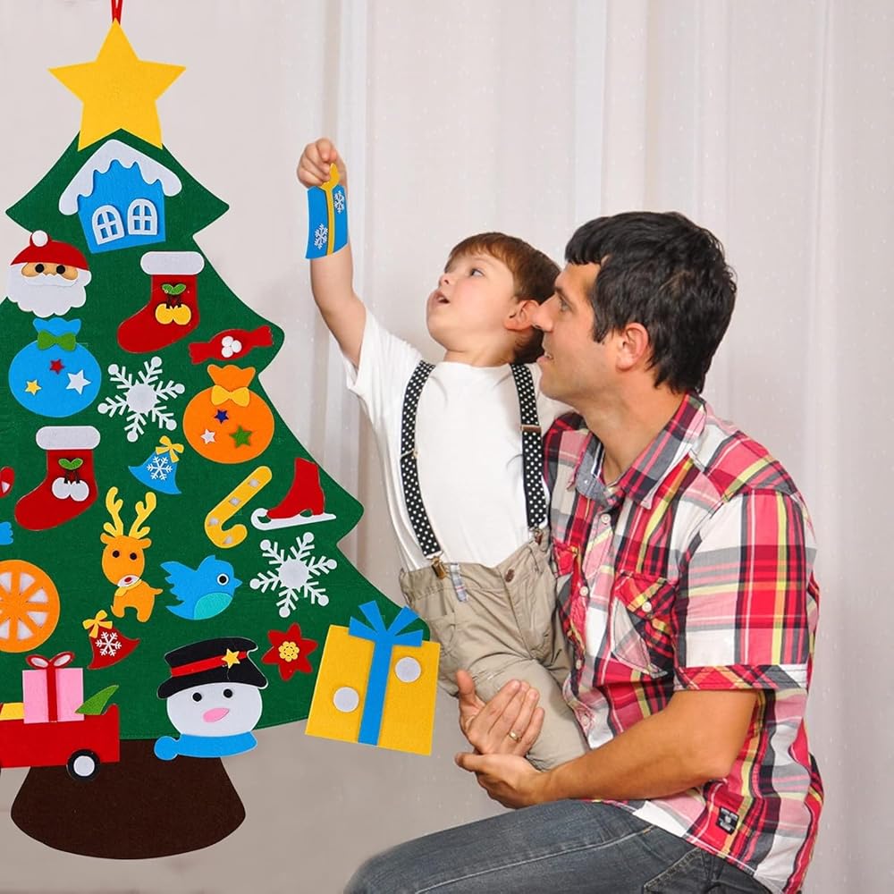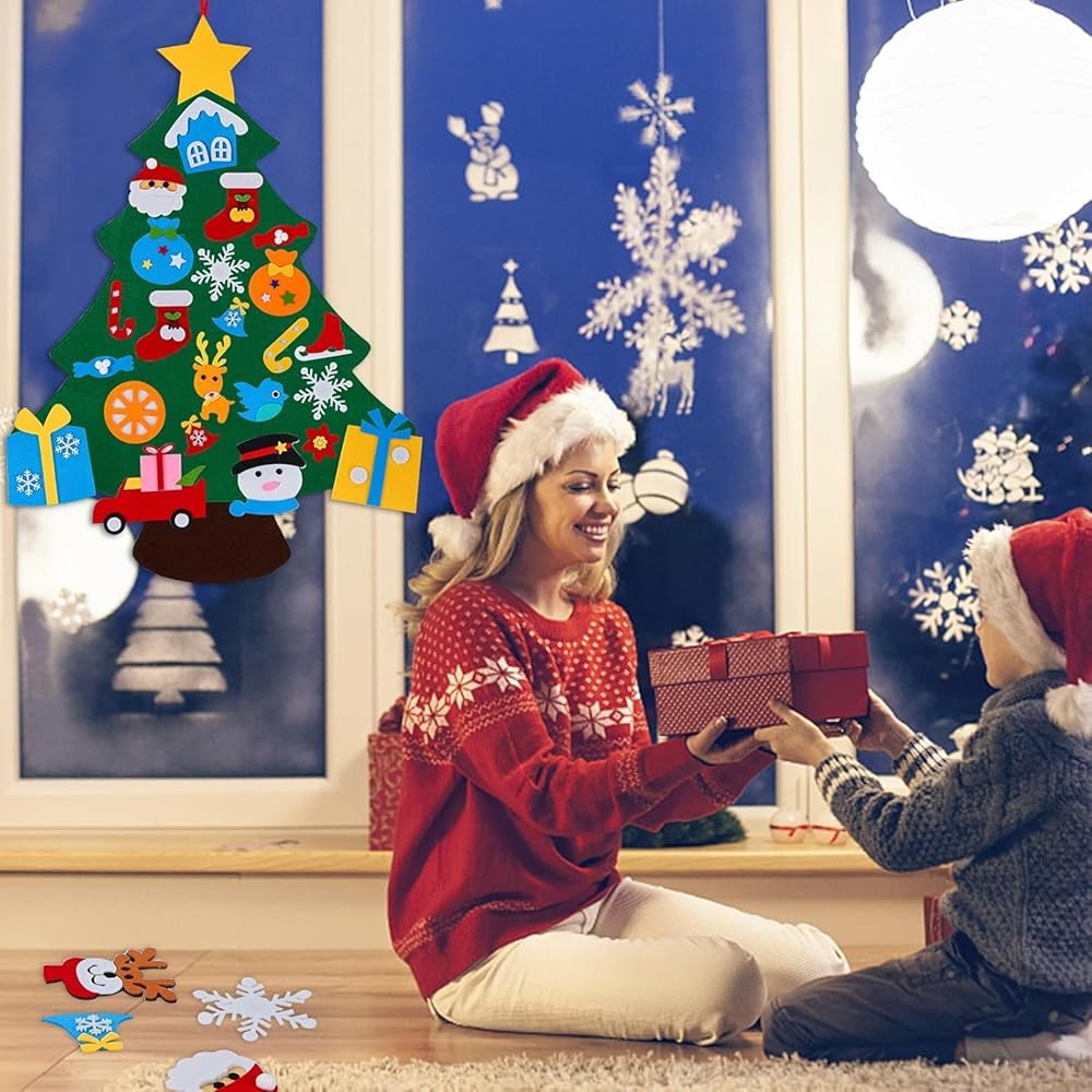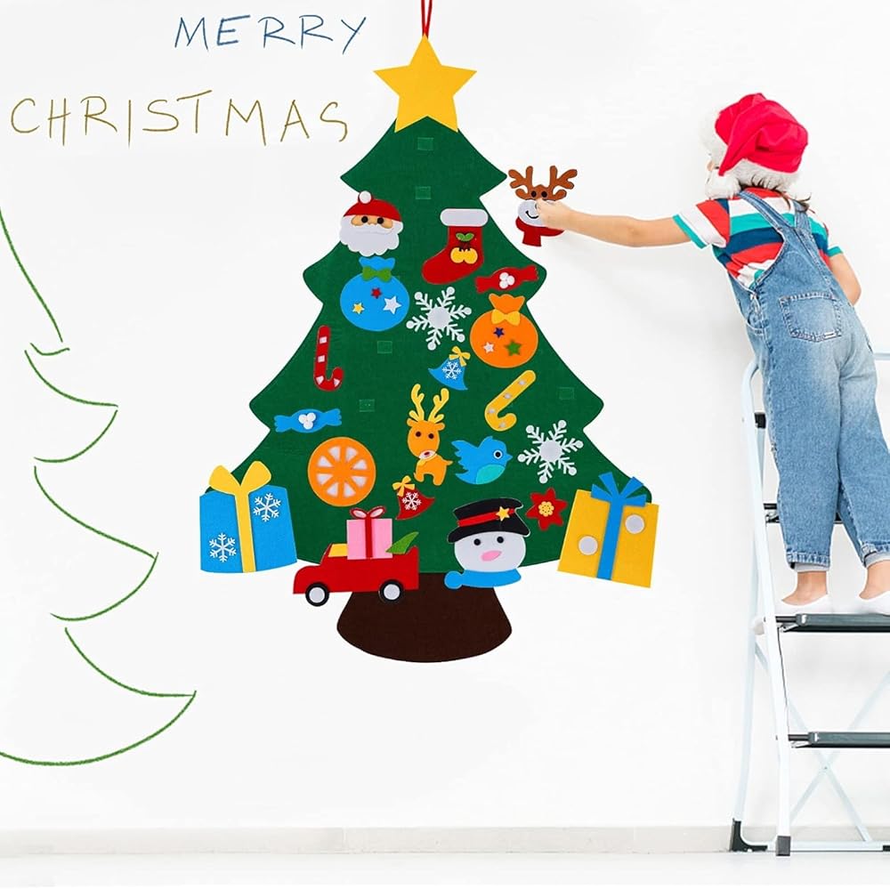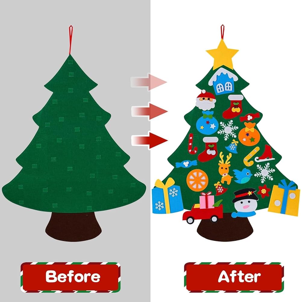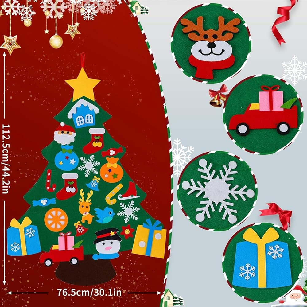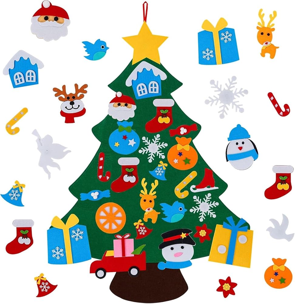 3ft DIY شعرت شجرة عيد الميلاد مع 31 حلي قابلة للفصل (سانتا كلوز ، رجل الثلج ، ندفة الثلج ، جوارب عيد الميلاد ، الحلوى ، الأجراس ، إلخ) ، رائعة لزخارف حفلة عيد الميلاد مع ضوء السلسلة (البطاريات غير المدرجة)