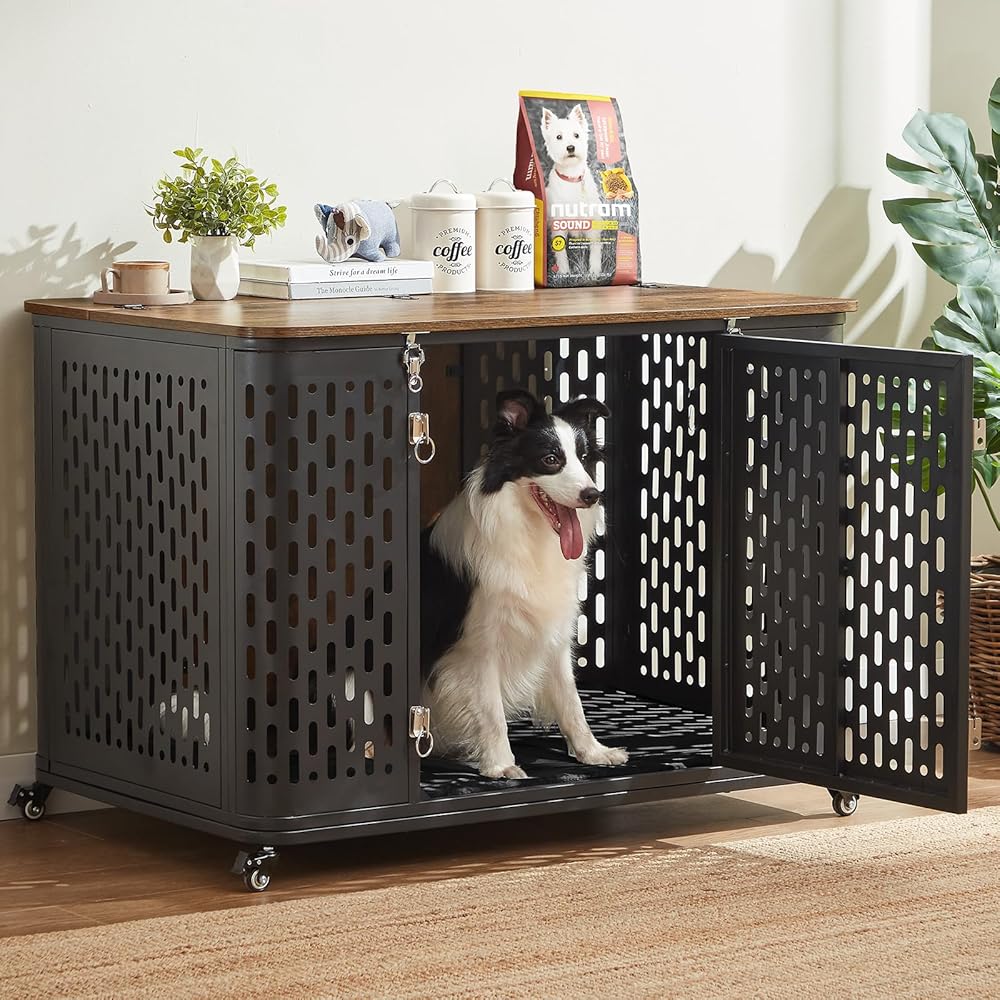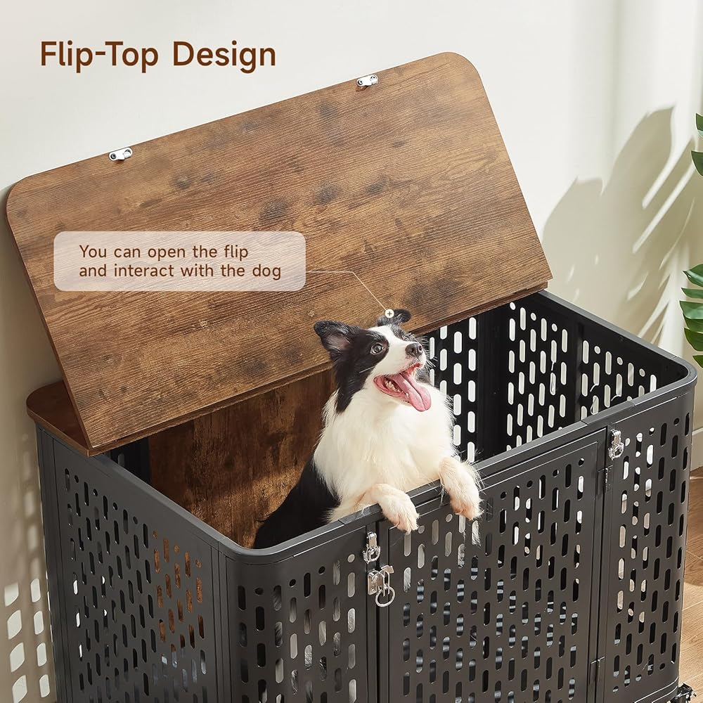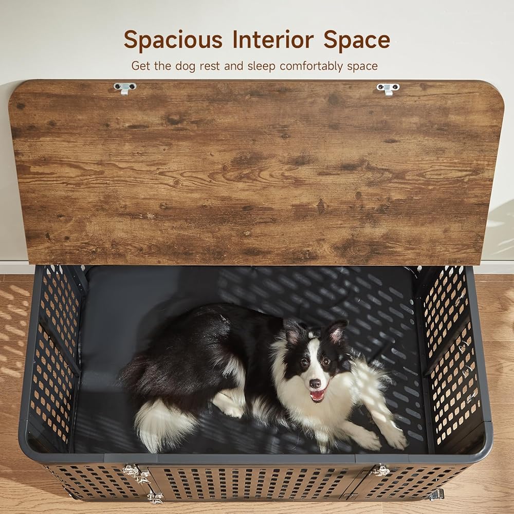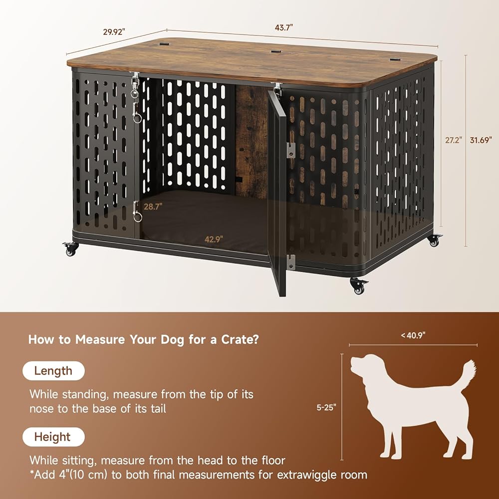 المساحة الداخلية الفسيحة: الأبعاد الداخلية: 42.9 "L x 28.7" W x 27.2 "H ، الأبعاد الإجمالية: 43.7" L x 29.92 "W x 31.69" H. كل من المساحات الأفقية والعمودية وفيرة بما يكفي للسماح للكلاب بالالتفاف بحرية ، وتمتد أطرافها ، والاستلقاء بشكل مريح وتتمتع بوقتها على مهل في الداخل. علاوة على ذلك ، فإن المساحة الفسيحة تجعلها مريحة للمالكين لوضع العديد من الضروريات اليومية للحيوانات الأليفة ، مثل حصائر الفراش وأوعية الطعام والألعاب.