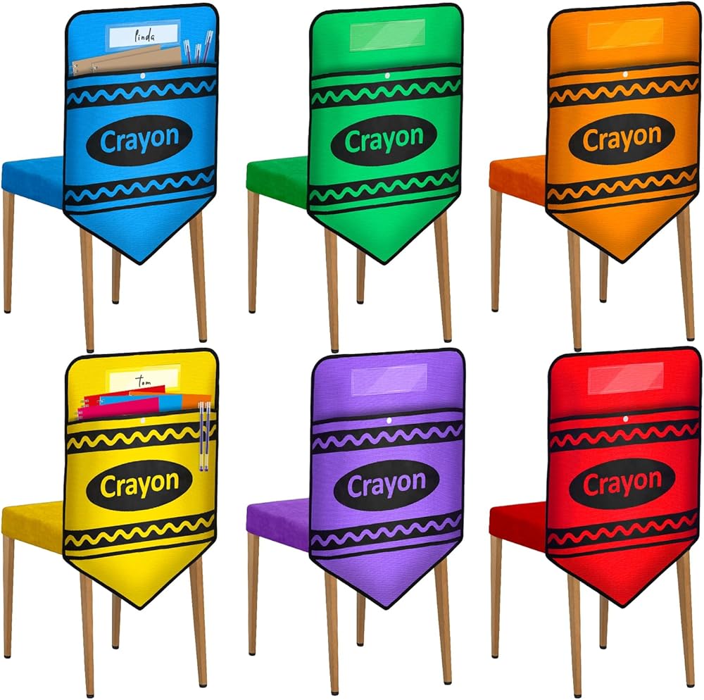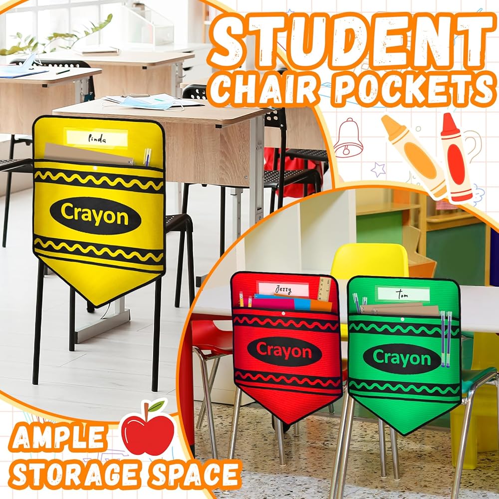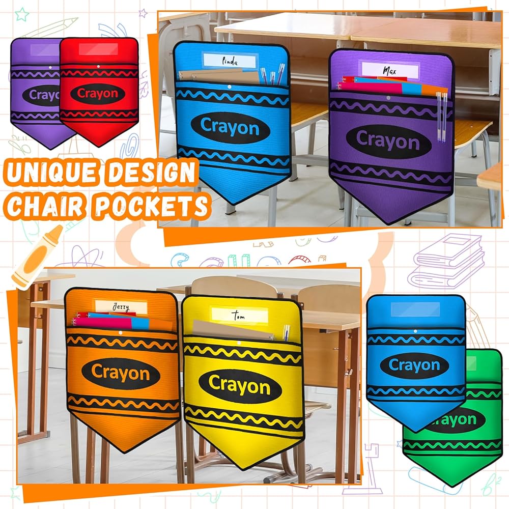 6 Pcs Chair Pockets for Classrooms Set Crayon Chairback Buddy Pocket with Name Slot for Back to School Chair Organizer Seat Storage Pockets for Classroom Home