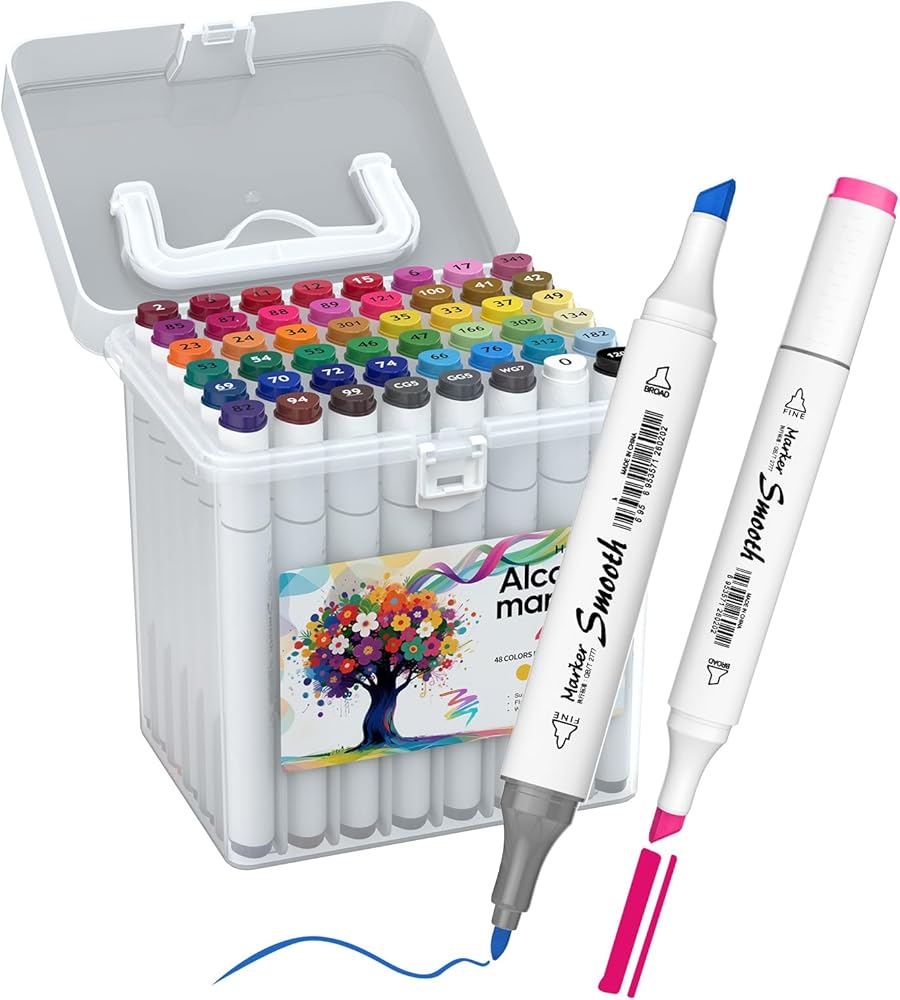 علامات الكحول الممتازة: يبقى الحبر سريع الجفاف على نحو سلس وحتى ، إلى جانب تصميم مقاوم للماء. يجعل من السهل تحقيق تأثيرات تلوين جميلة. امنح الفنانين كل الظلال التي يحتاجونها للطلاء والرسم والكوميديا وكتب التلوين والمزيد.