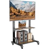 AENTGIU Rolling TV Stand STAND Mobile TV CART مقابل 32 "-75" جميع أجهزة التلفزيون العلامة التجارية ، وقصة تلفزيون محمولة قابلة للقفل على عجلات مع Metal TV Mount و 2 Tier Wood Wood Rask لغرفة المعيشة ، وغرفة النوم ، والمكتب (تشمل جميع الأجهزة)