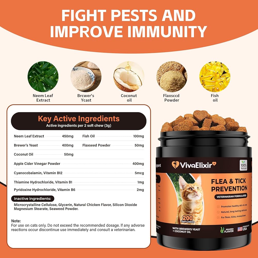 حماية فعالة: مع مضغ ناعم ، ستطور قطتك مقاومة طبيعية للبراغيث والقراد بمرور الوقت. للحصول على أفضل النتائج ، امنح قطتك واحدة من أدوات المضغ يوميًا. تساعد هذه المضغات على تقوية نظام المناعة لها ، ودعم صحة الجلد ، وتوفير حماية شاملة على مدار العام.