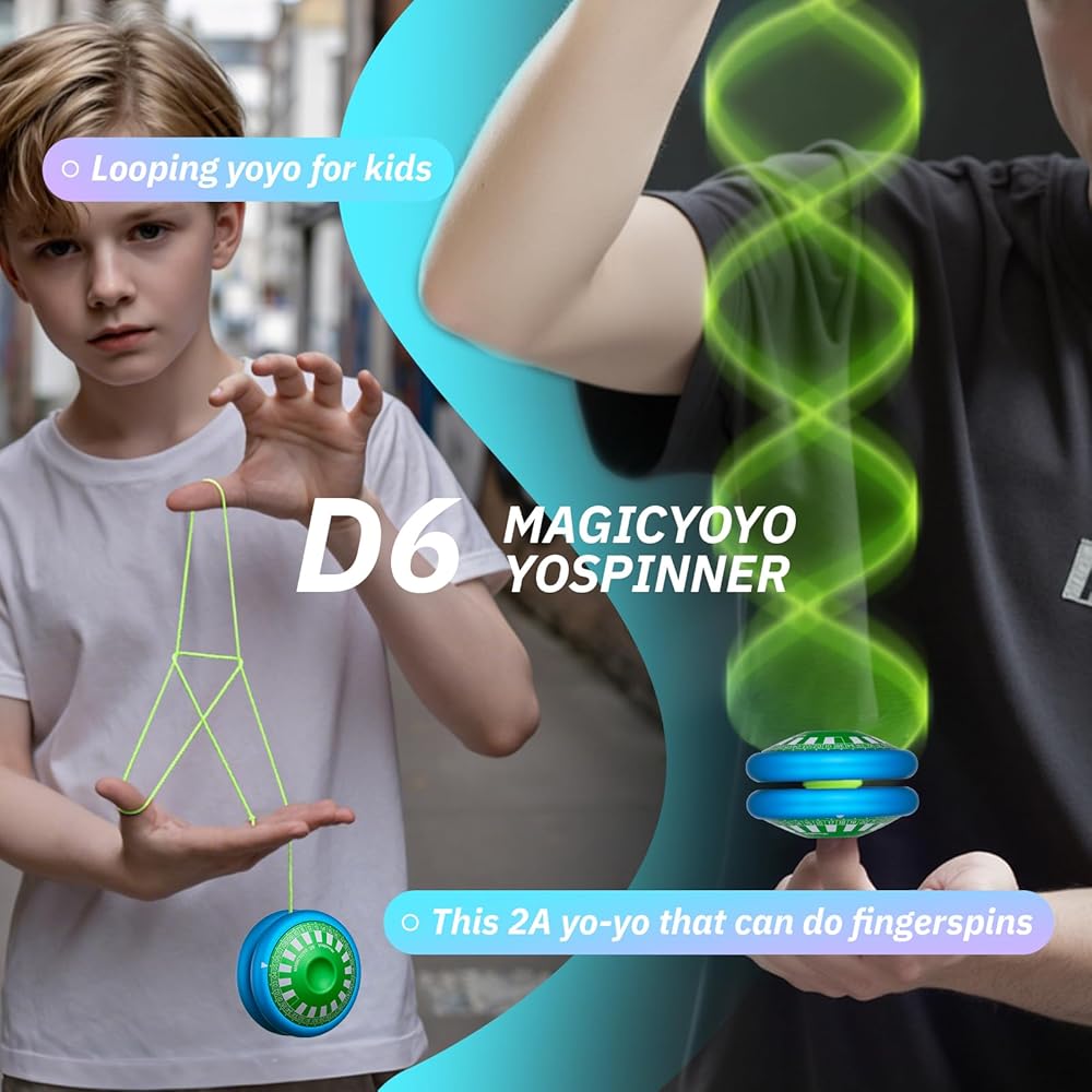 【التصميم التخريبي المعدني yoyo】: Magic Yoyo D6 yospinner مصمم مع نظام غزل الدوار الفريد. إن الدوران المستقل بين جسم yo-yo و yo yo يحوله إلى دوران إصبع عالي الأداء ، فإنه يتيح 2A yo-yo على شكل طبل لأداء يدور الأصابع وحتى الحيل yoyo الحمض النووي
