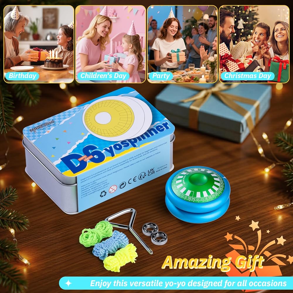 【هدية مذهلة لجميع الأعمار】 حزمة Magicyoyo D6 تشمل Metal Yoyo Professional D6 yospinner ، 3pcs yoyo ، وتأتي أيضًا مع اثنين من المحمل الضيق المثبت مسبقًا و scremagicyo d6 هي لعبة متعددة الاستخدامات والتي تجلب المرح والإبداع والمفاجأة في كل اليد. من مفاجآت عيد ميلاد إلى هدايا العطلات ، أو ما إذا كنت جامعًا أو طفلًا فضوليًا أو تريد فقط لعبة مكتب رائعة ، فإن D6 تقدم إلى ما هو أبعد من التوقعات